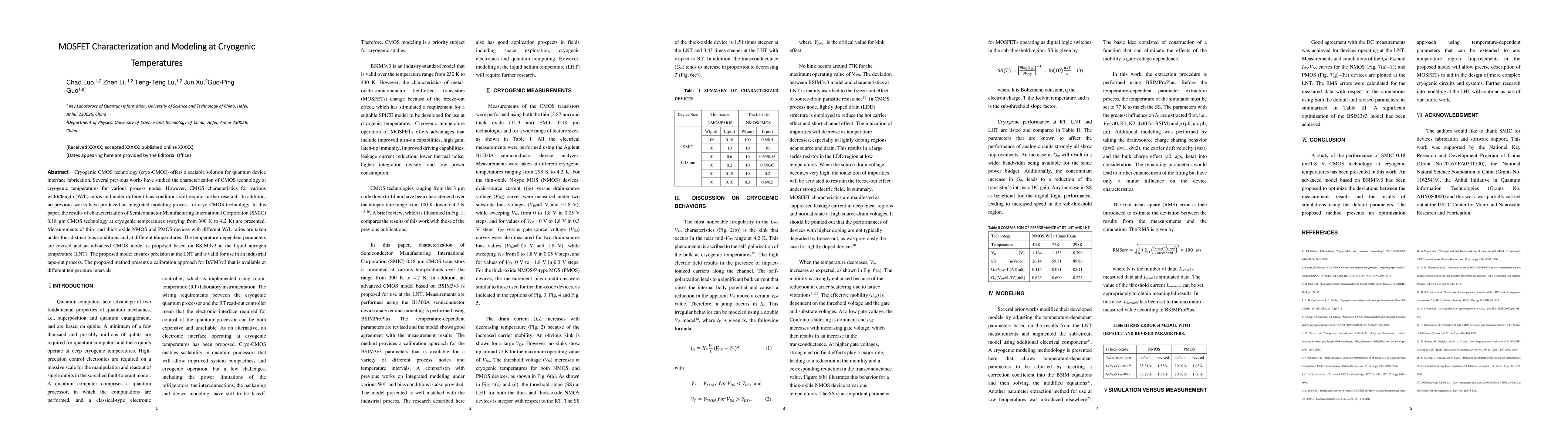 This paper characterizes SMIC 0.18 μm CMOS technology at cryogenic temperatures, presenting measurements of NMOS and PMOS devices under various bias conditions. An advanced CMOS model based on BSIM3v3 is proposed to ensure precision at liquid nitrogen temperatures, offering a calibration approach applicable across different temperature intervals.