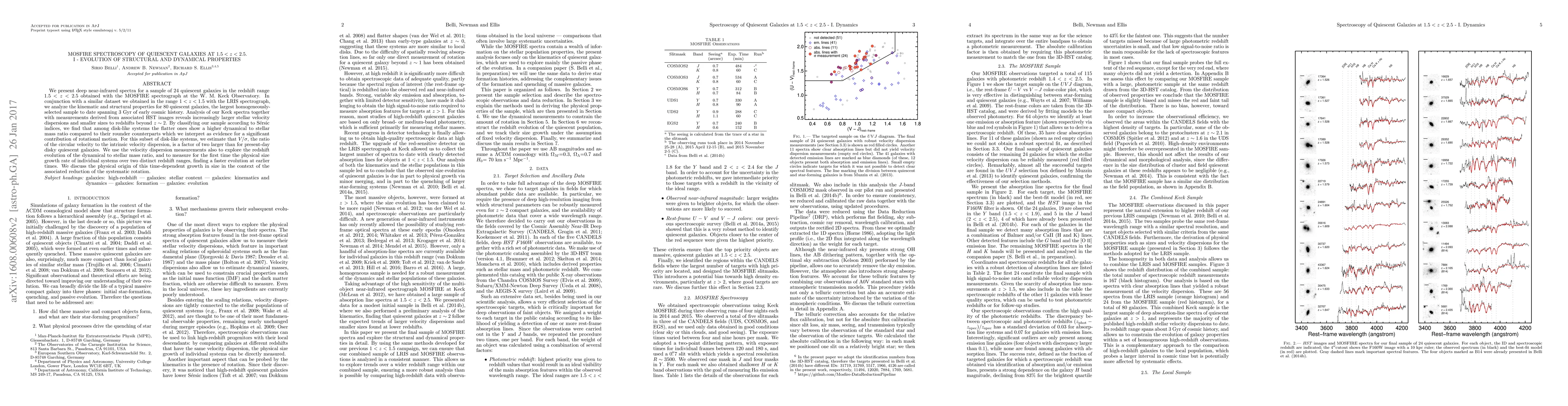 This paper uses MOSFIRE spectroscopy to analyze the structural and dynamical properties of 80 quiescent galaxies at redshifts 1.5 < z < 2.5, revealing larger stellar velocity dispersions and smaller sizes at higher redshifts. The study finds that disk-like systems with flatter profiles exhibit higher rotational motion, suggesting a significant contribution of rotational dynamics.