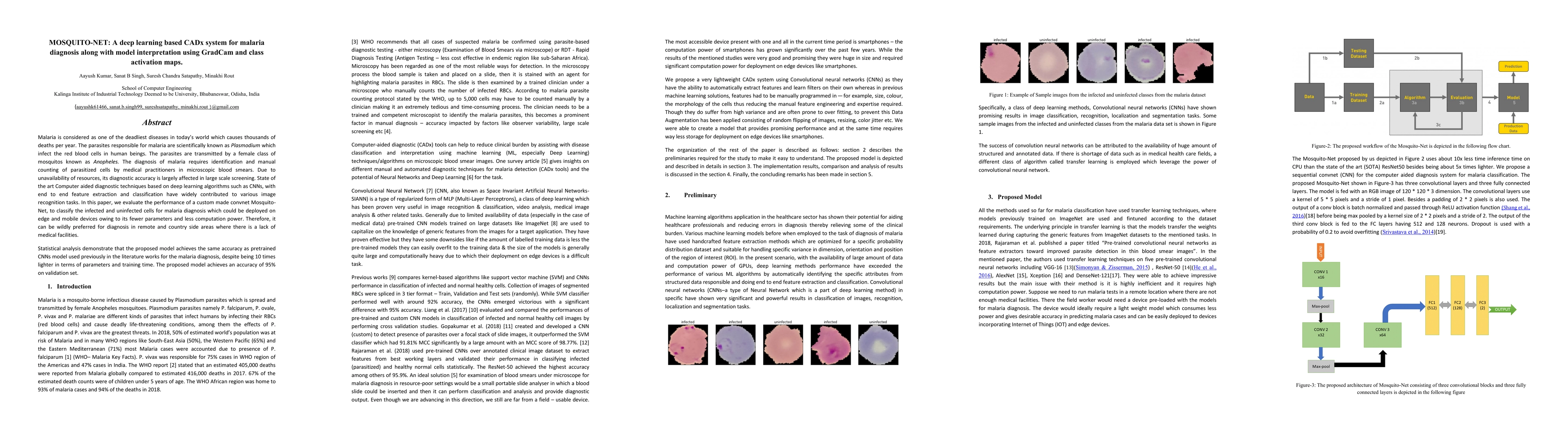This paper introduces Mosquito-Net, a deep learning-based CADx system using CNNs for diagnosing malaria from microscopic blood smears. It employs GradCam and class activation maps for model interpretation, aiming to provide an accessible diagnostic tool for remote areas with limited medical resources.