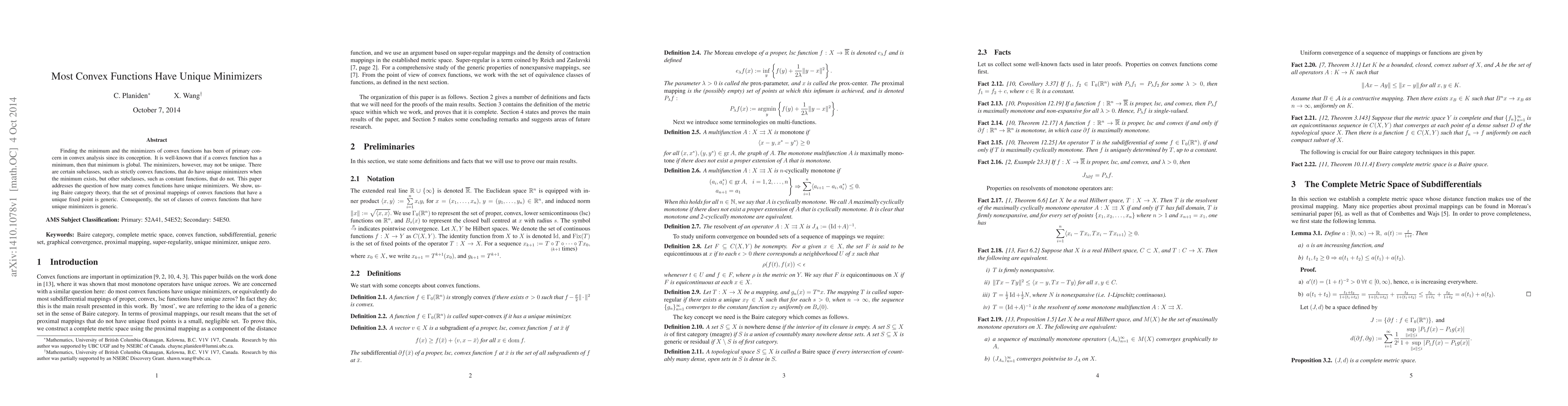 This paper demonstrates, through Baire category theory, that most convex functions possess unique minimizers, establishing that the set of such functions is generic. It highlights the significance of proximal mappings in determining the uniqueness of minimizers for convex functions.
