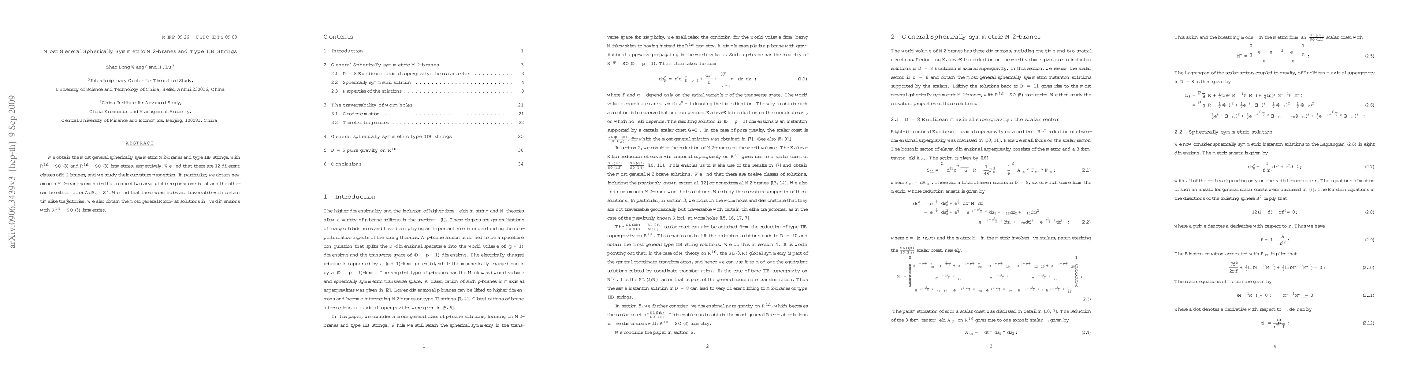 We obtain the most general spherically symmetric M2-branes and type IIB strings, with \R^{1,2}\times SO(8) and \R^{1,1}\times SO(8) isometries respectively. We find that there are twelve different classes of M2-branes, and we study their curvature properties. In particular we obtain new smooth M2-brane wormholes that connect two asymptotic regions: one is flat and the other can be either flat or AdS_4\times S^7. We find that these wormholes are traversable with certain time-like trajectories. We also obtain the most general Ricci-flat solutions in five dimensions with \R^{1,1}\times SO(3) isometries.