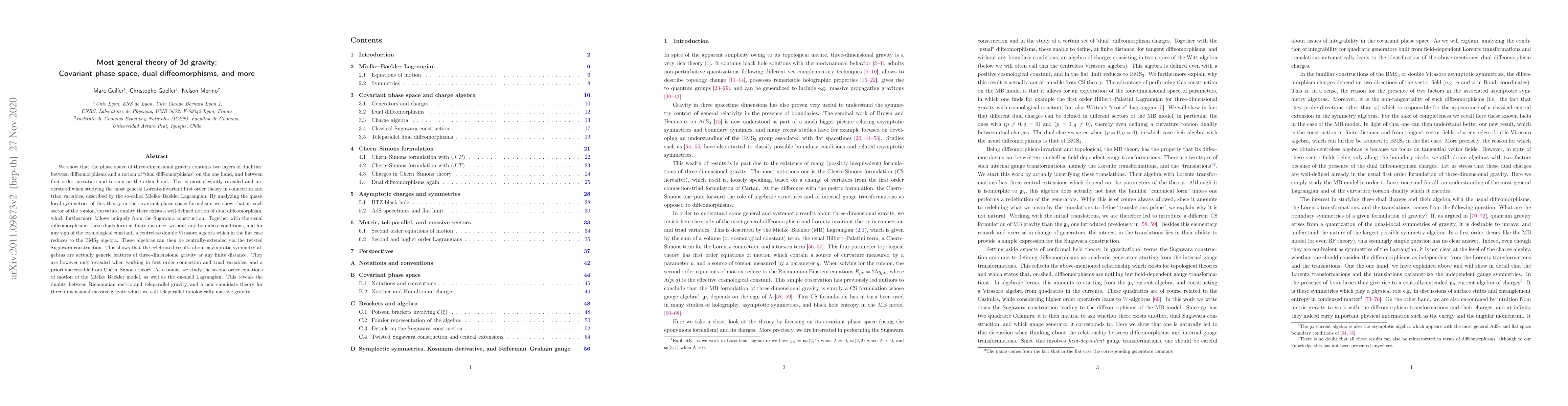 We show that the phase space of three-dimensional gravity contains two layers of dualities: between diffeomorphisms and a notion of "dual diffeomorphisms" on the one hand, and between first order curvature and torsion on the other hand. This is most elegantly revealed and understood when studying the most general Lorentz-invariant first order theory in connection and triad variables, described by the so-called Mielke-Baekler Lagrangian. By analyzing the quasi-local symmetries of this theory in the covariant phase space formalism, we show that in each sector of the torsion/curvature duality there exists a well-defined notion of dual diffeomorphism, which furthermore follows uniquely from the Sugawara construction. Together with the usual diffeomorphisms, these duals form at finite distance, without any boundary conditions, and for any sign of the cosmological constant, a centreless double Virasoro algebra which in the flat case reduces to the BMS$_3$ algebra. These algebras can then be centrally-extended via the twisted Sugawara construction. This shows that the celebrated results about asymptotic symmetry algebras are actually generic features of three-dimensional gravity at any finite distance. They are however only revealed when working in first order connection and triad variables, and a priori inaccessible from Chern-Simons theory. As a bonus, we study the second order equations of motion of the Mielke-Baekler model, as well as the on-shell Lagrangian. This reveals the duality between Riemannian metric and teleparallel gravity, and a new candidate theory for three-dimensional massive gravity which we call teleparallel topologically massive gravity.