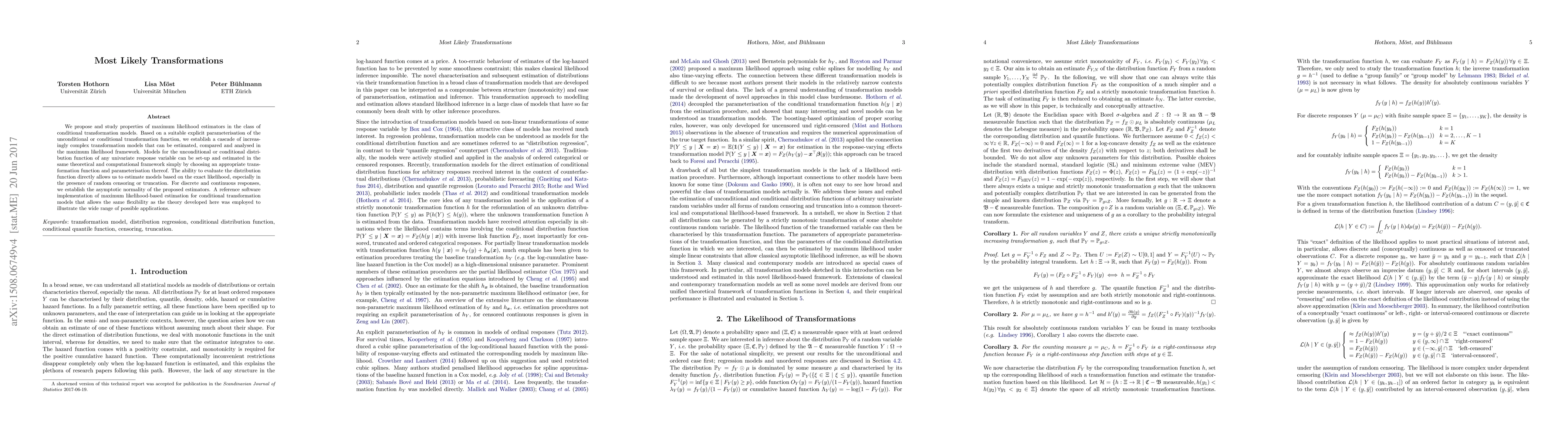 This paper introduces maximum likelihood estimators for conditional transformation models, providing a theoretical and computational framework for univariate response variables. It establishes asymptotic normality of estimators for discrete and continuous responses, and demonstrates the method's flexibility through a reference software implementation for various applications.