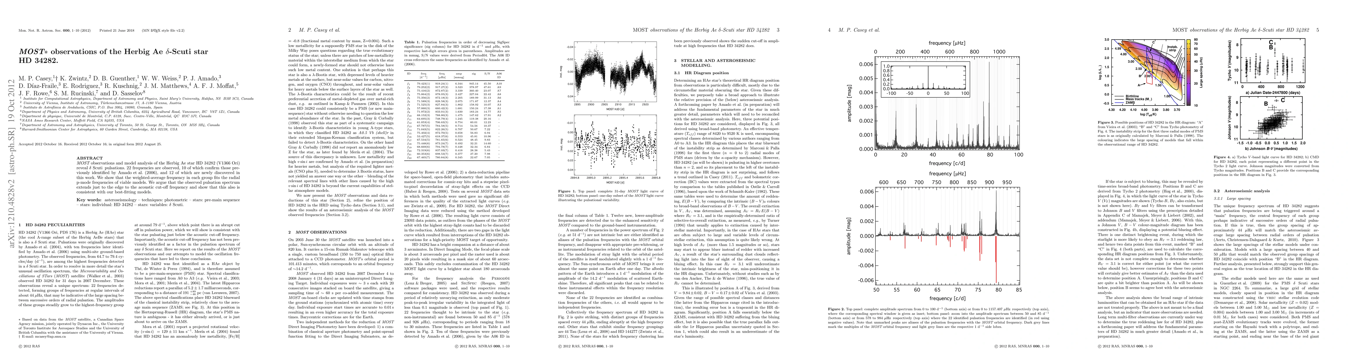 MOST observations and model analysis of the Herbig Ae star HD 34282 (V1366 Ori) reveal {\delta}-Scuti pulsations. 22 frequencies are observed, 10 of which confirm those previously identified by Amado et al. (2006), and 12 of which are newly discovered in this work. We show that the weighted-average frequency in each group fits the radial p-mode frequencies of viable models. We argue that the observed pulsation spectrum extends just to the edge to the acoustic cut-off frequency and show that this also is consistent with our best-fitting models.