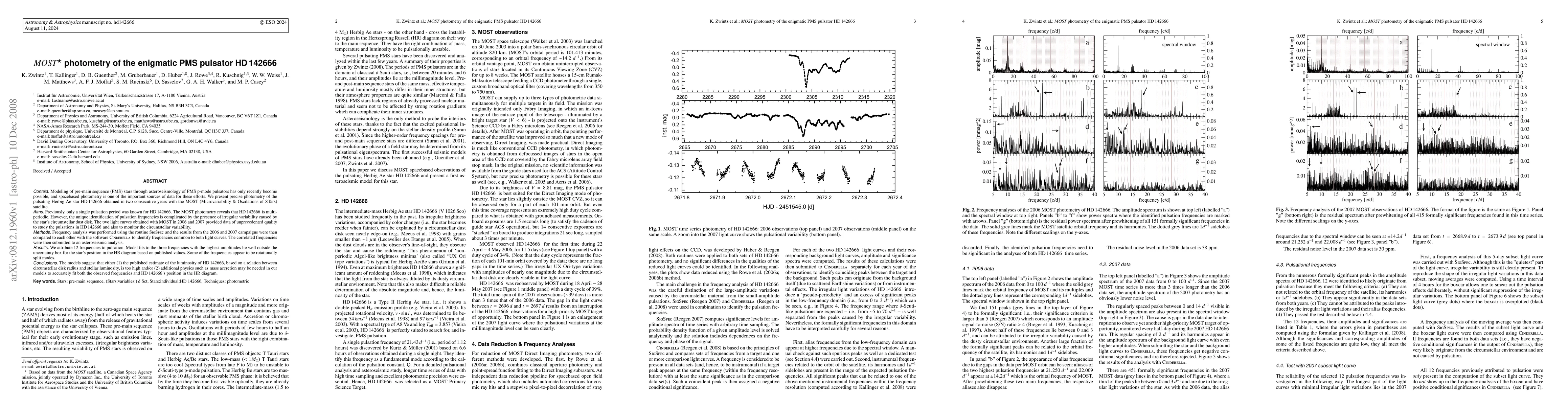 We present precise photometry of the pulsating Herbig Ae star HD 142666 obtained in two consecutive years with the MOST (Microvariability & Oscilations of STars) satellite. Previously, only a single pulsation period was known for HD 142666. The MOST photometry reveals that HD 142666 is multi-periodic. However, the unique identification of pulsation frequencies is complicated by the presence of irregular variability caused by the star's circumstellar dust disk. The two light curves obtained with MOST in 2006 and 2007 provided data of unprecedented quality to study the pulsations in HD 142666 and also to monitor the circumstellar variability. We attribute 12 frequencies to pulsation. Model fits to the three frequencies with the highest amplitudes lie well outside the uncertainty box for the star's position in the HR diagram based on published values. The models suggest that either (1) the published estimate of the luminosity of HD 142666, based on a relation between circumstellar disk radius and stellar luminosity, is too high and/or (2) additional physics such as mass accretion may be needed in our models to accurately fit both the observed frequencies and HD 142666's position in the HR diagram.
