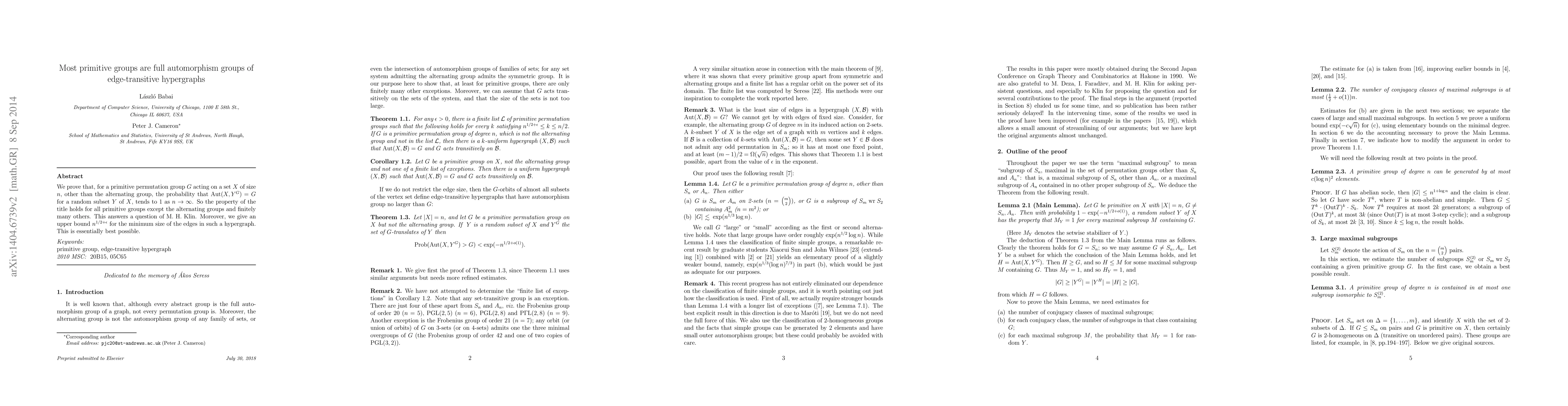 Research shows that most primitive permutation groups acting on a set tend to make their full automorphism group equal to the original group as the set size increases. This property holds for all but finitely many exceptions.