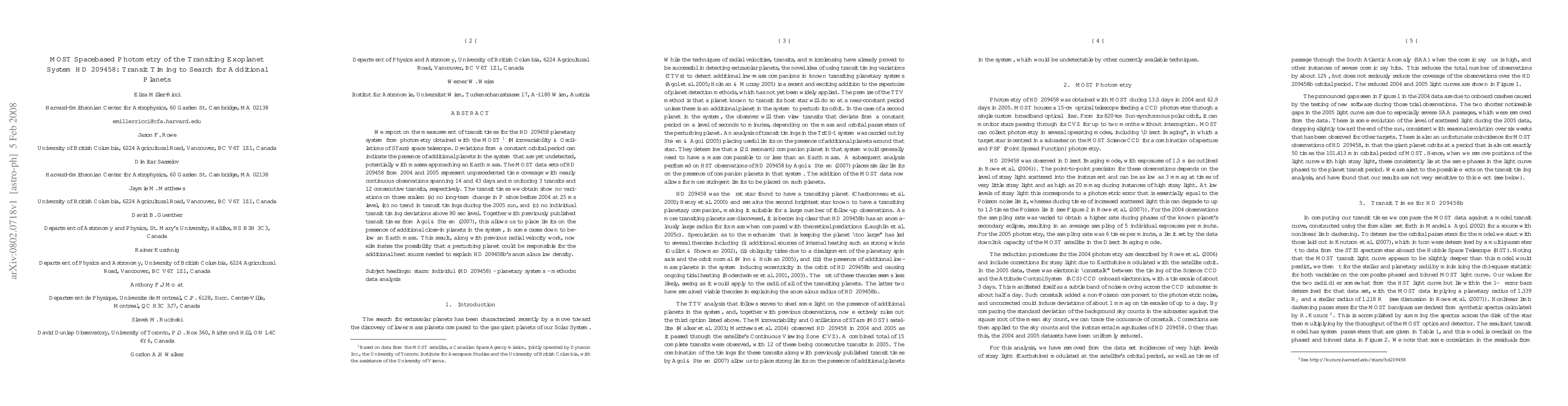 This study uses MOST space telescope data to measure transit times for the HD 209458 exoplanet system, finding no significant variations that would suggest additional undetected planets. The results rule out the presence of close-in planets with masses below an Earth mass, supporting the absence of a perturbing planet that could explain the low density of HD 209458b.