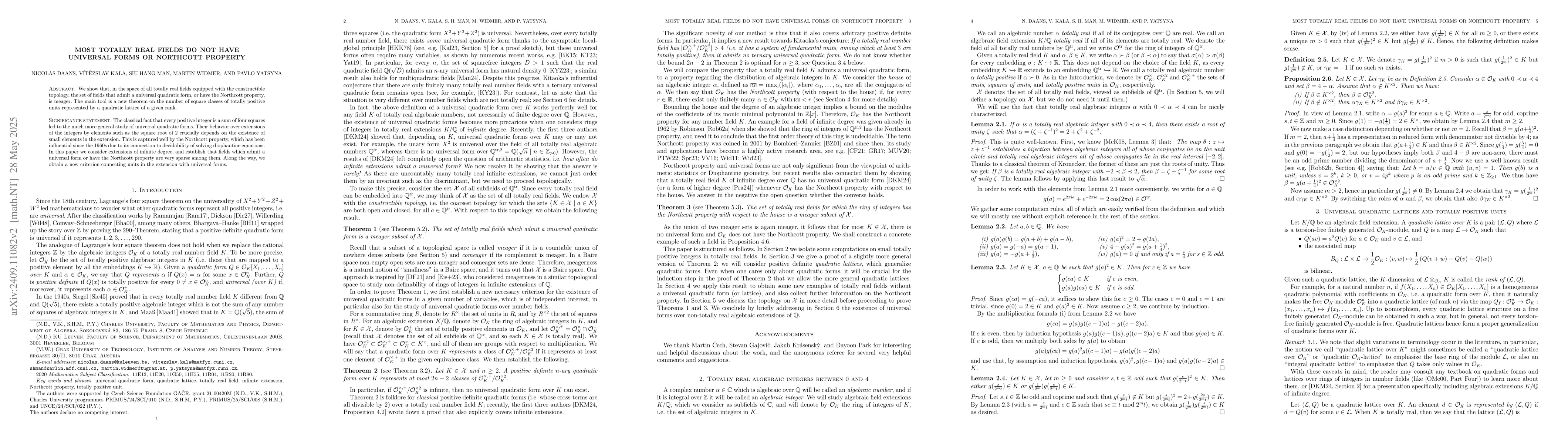 Summary: This paper demonstrates that most totally real fields lack universal quadratic forms or the Northcott property, showing these sets are meager in the constructible topology, utilizing a novel theorem on square classes represented by quadratic lattices.