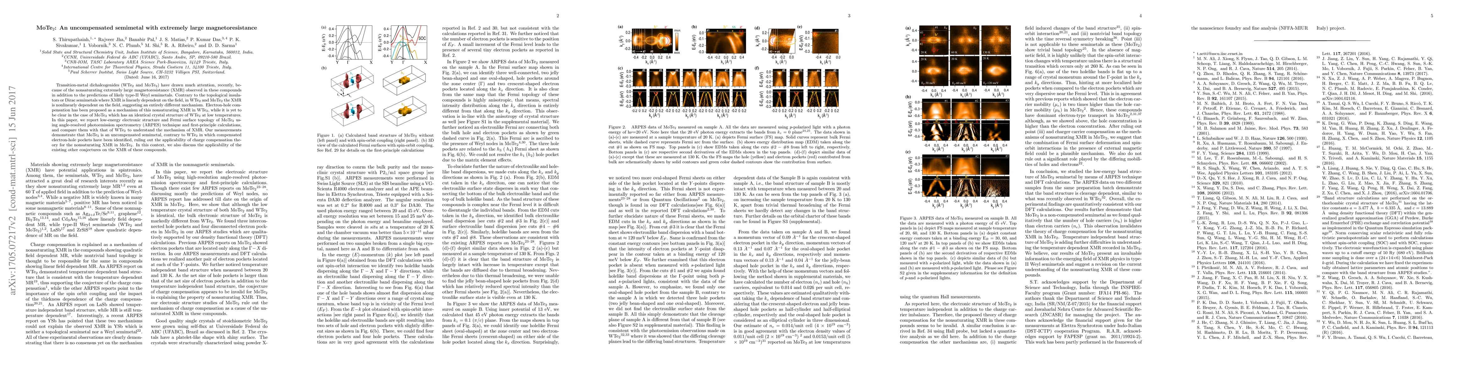 Transition-metal dichalcogenides (WTe$_2$ and MoTe$_2$) have drawn much attention, recently, because of the nonsaturating extremely large magnetoresistance (XMR) observed in these compounds in addition to the predictions of likely type-II Weyl semimetals. Contrary to the topological insulators or Dirac semimetals where XMR is linearly dependent on the field, in WTe$_2$ and MoTe$_2$ the XMR is nonlinearly dependent on the field, suggesting an entirely different mechanism. Electron-hole compensation has been proposed as a mechanism of this nonsaturating XMR in WTe$_2$, while it is yet to be clear in the case of MoTe$_2$ which has an identical crystal structure of WTe$_2$ at low temperatures. In this paper, we report low-energy electronic structure and Fermi surface topology of MoTe$_2$ using angle-resolved photoemission spectrometry (ARPES) technique and first-principle calculations, and compare them with that of WTe$_2$ to understand the mechanism of XMR. Our measurements demonstrate that MoTe$_2$ is an uncompensated semimetal, contrary to WTe$_2$ in which compensated electron-hole pockets have been identified, ruling out the applicability of charge compensation theory for the nonsaturating XMR in MoTe$_2$. In this context, we also discuss the applicability of the existing other conjectures on the XMR of these compounds.