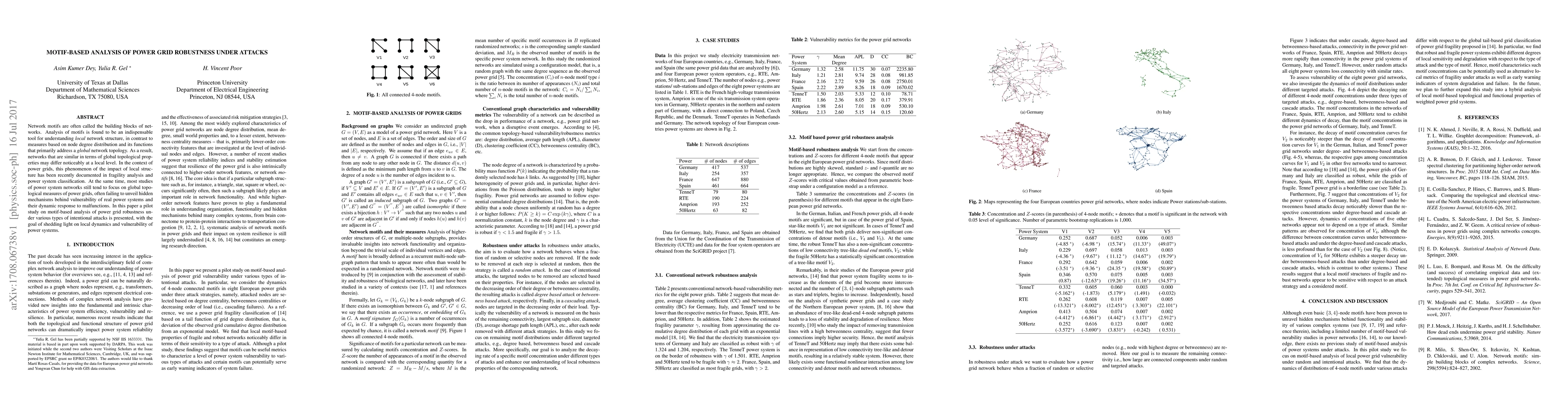 This paper explores the robustness of power grids through motif-based analysis, focusing on local network structures rather than global topology. It aims to uncover the hidden mechanisms behind power system vulnerabilities and their dynamic responses to intentional attacks.