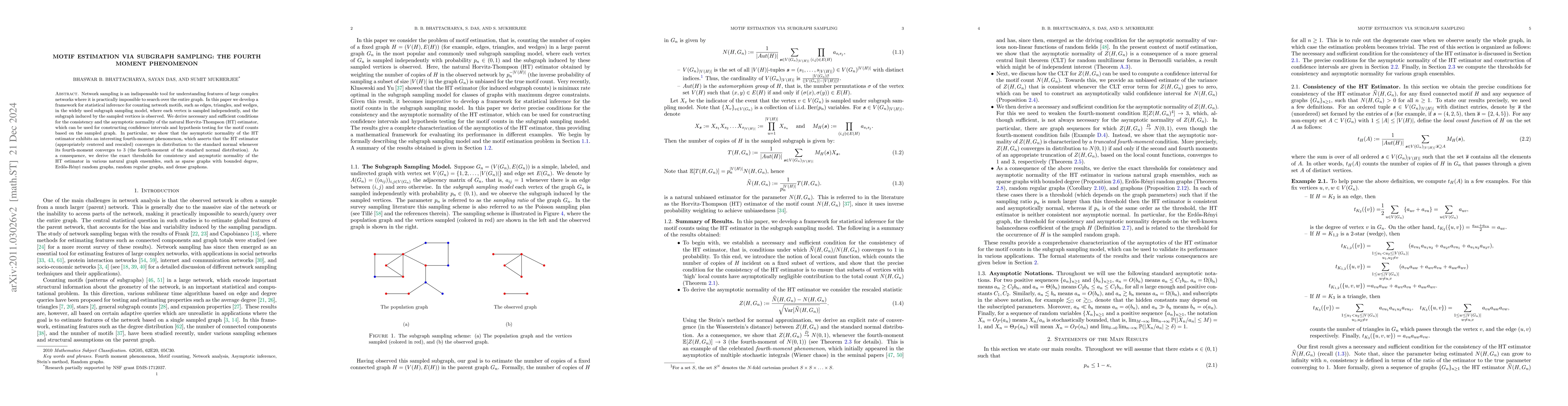 Network sampling is an indispensable tool for understanding features of large complex networks where it is practically impossible to search over the entire graph. In this paper, we develop a framework for statistical inference for counting network motifs, such as edges, triangles, and wedges, in the widely used subgraph sampling model, where each vertex is sampled independently, and the subgraph induced by the sampled vertices is observed. We derive necessary and sufficient conditions for the consistency and the asymptotic normality of the natural Horvitz-Thompson (HT) estimator, which can be used for constructing confidence intervals and hypothesis testing for the motif counts based on the sampled graph. In particular, we show that the asymptotic normality of the HT estimator exhibits an interesting fourth-moment phenomenon, which asserts that the HT estimator (appropriately centered and rescaled) converges in distribution to the standard normal whenever its fourth-moment converges to 3 (the fourth-moment of the standard normal distribution). As a consequence, we derive the exact thresholds for consistency and asymptotic normality of the HT estimator in various natural graph ensembles, such as sparse graphs with bounded degree, Erdos-Renyi random graphs, random regular graphs, and dense graphons.
