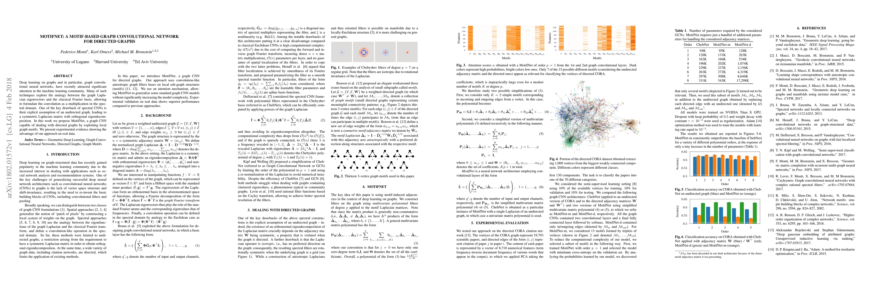 MotifNet introduces a novel graph convolutional network that effectively handles directed graphs by leveraging local graph motifs, addressing the limitation of spectral CNNs that assume undirected graphs. Experimental results demonstrate the method's superior performance on real-world datasets.