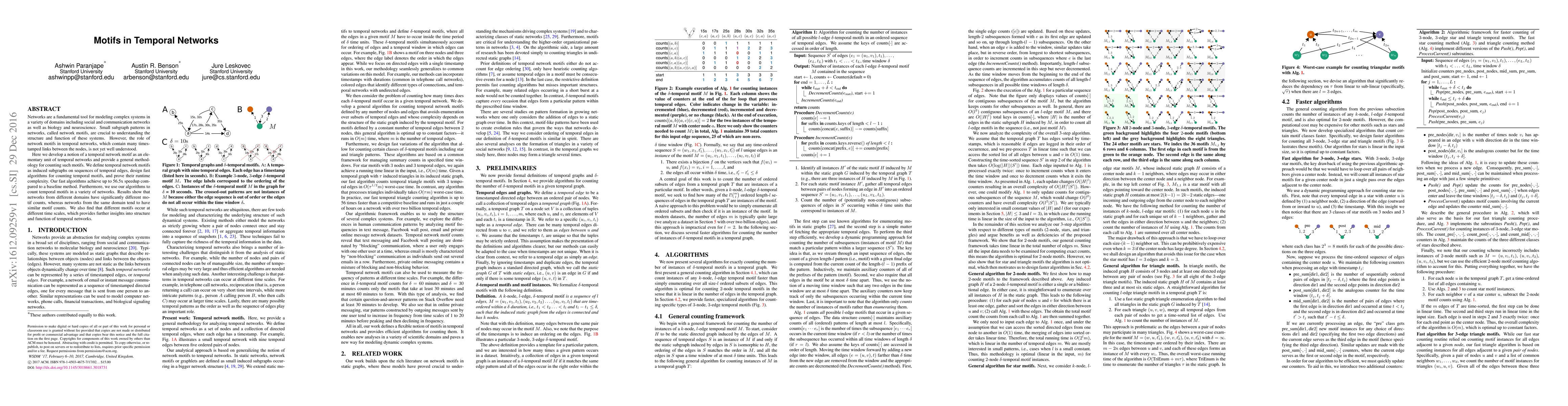 This paper introduces a methodology for identifying and counting temporal network motifs—small subgraph patterns in networks with timestamped links—and presents efficient algorithms for this task. The study reveals that different temporal networks exhibit distinct motif counts, offering insights into their structure and function across various domains.