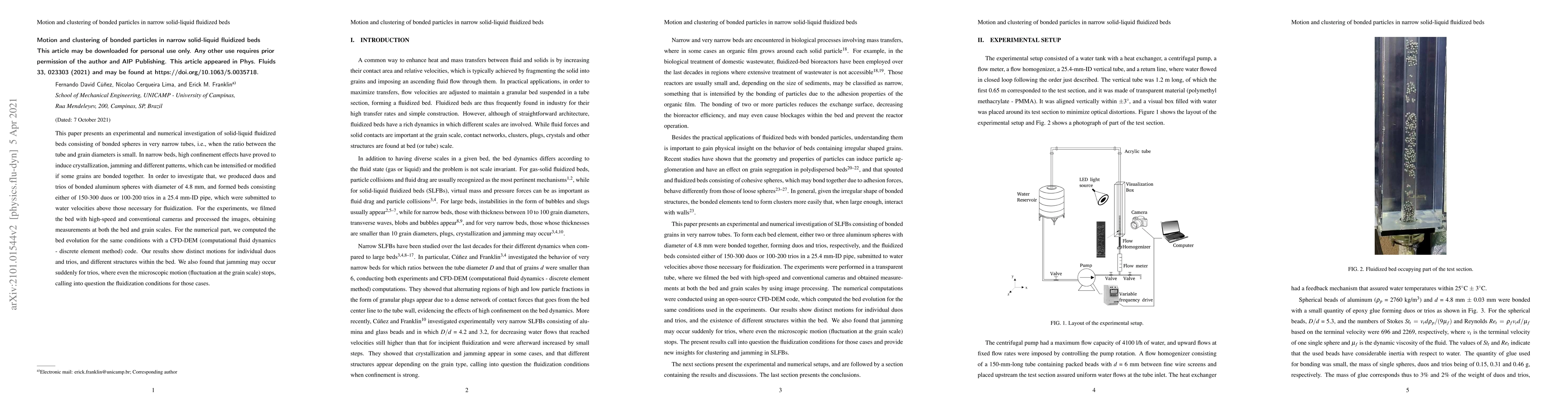 This study investigates the dynamics and clustering of bonded particles in narrow solid-liquid fluidized beds using experimental and numerical methods. Results reveal distinct behaviors of duos and trios of bonded aluminum spheres in confined spaces, with jamming occurring suddenly for trios, challenging traditional fluidization conditions.