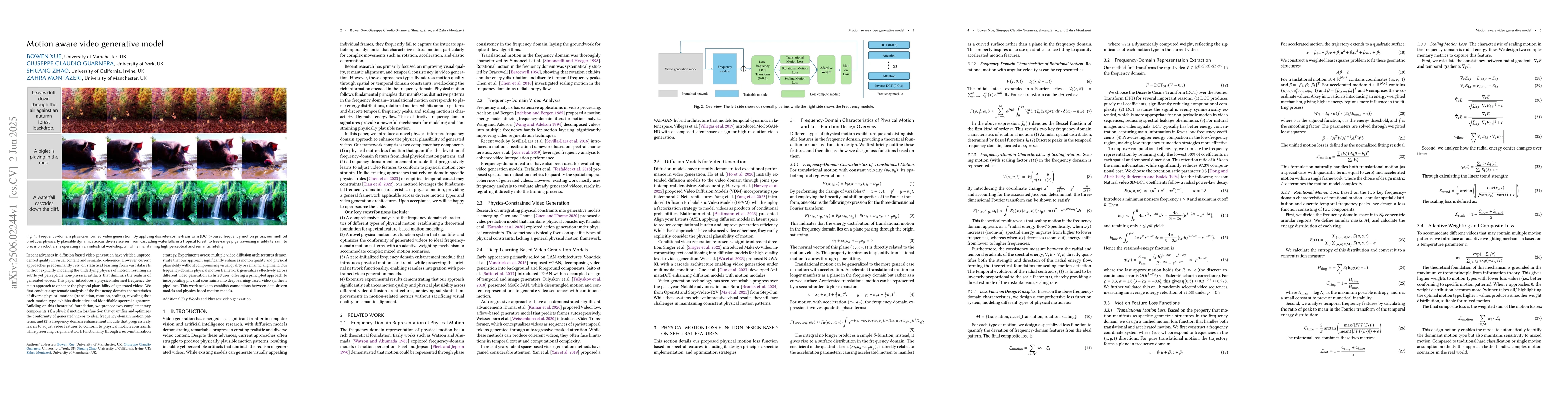 The novelty of this work lies in its physics-informed frequency domain approach, which systematically analyzes motion characteristics and incorporates them into the video generation process, improving motion quality and physical plausibility.