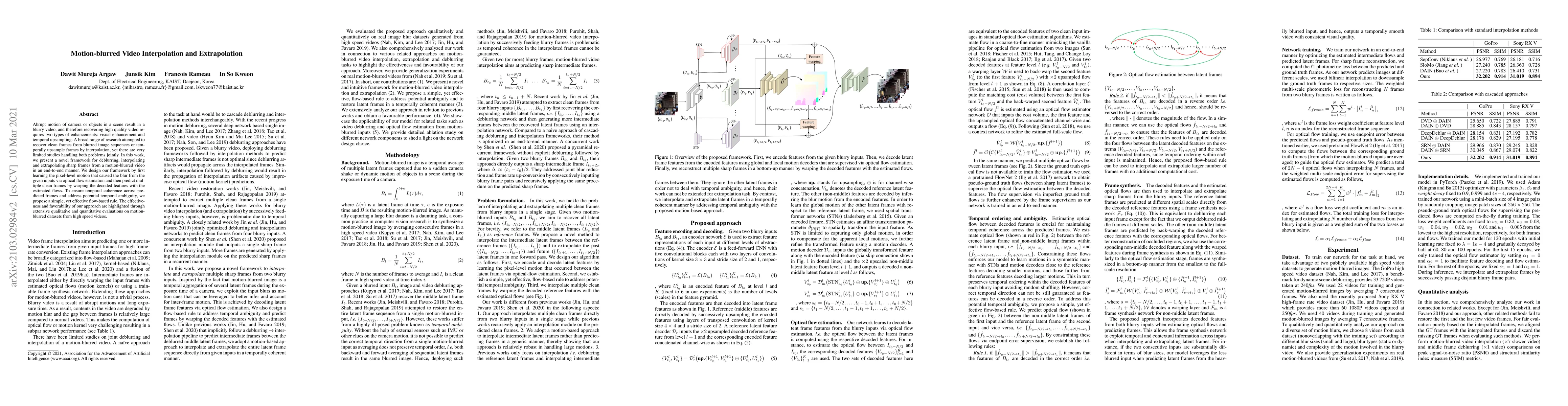 This paper introduces a novel framework for deblurring, interpolating, and extrapolating sharp frames from motion-blurred videos using an end-to-end approach. It leverages optical flow estimation to learn pixel-level motion and predicts clean frames by warping decoded features, ensuring temporal coherence with a flow-based rule.