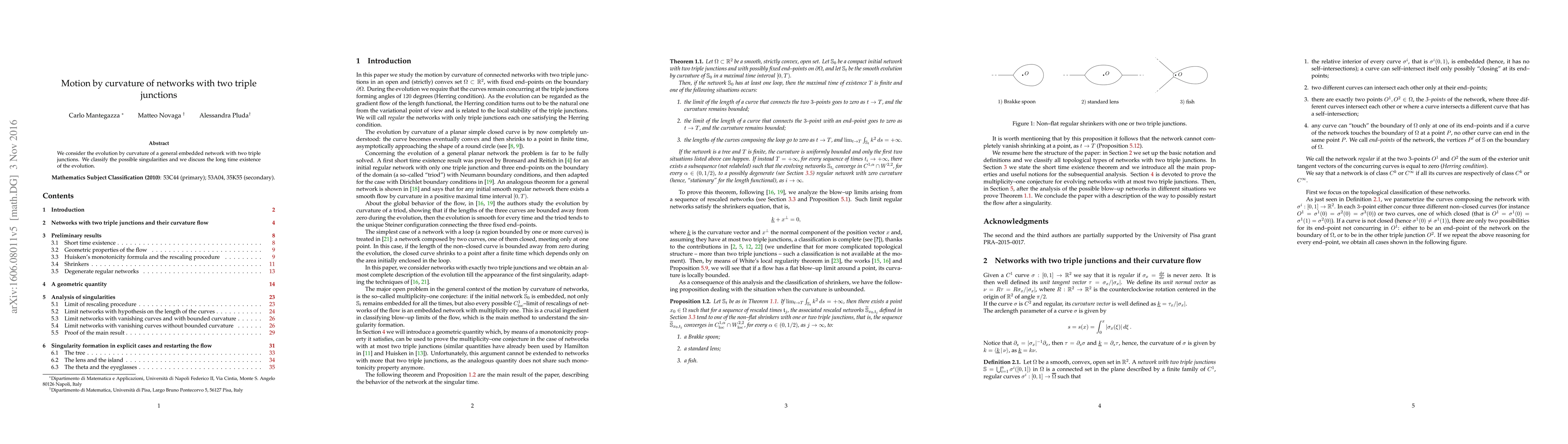 Researchers studied how a network with two triple junctions evolves over time when its edges curve. They found that the network can exist for long periods under certain conditions.