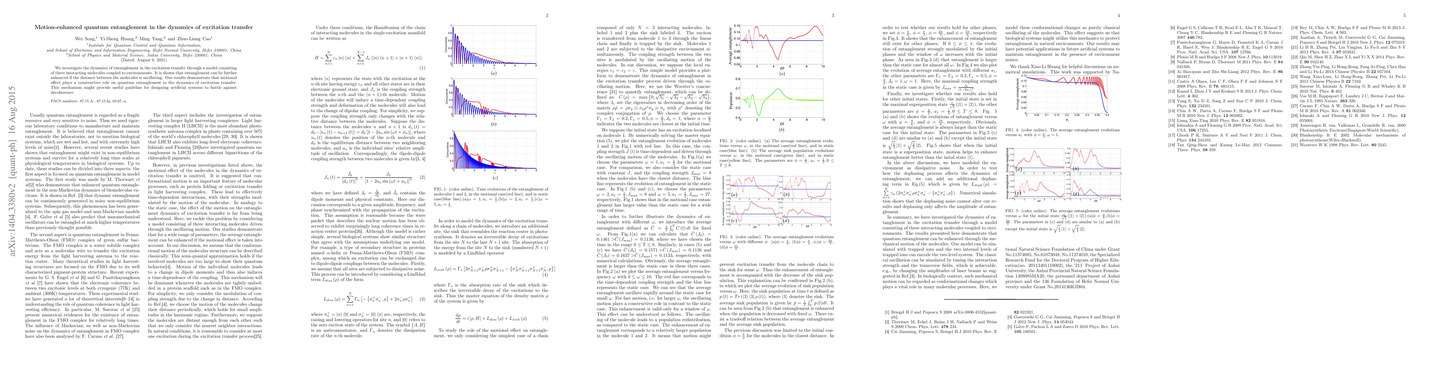 This research explores how oscillating distances between molecules enhance quantum entanglement during excitation transfer in noisy environments, suggesting a potential method to mitigate decoherence in artificial quantum systems.