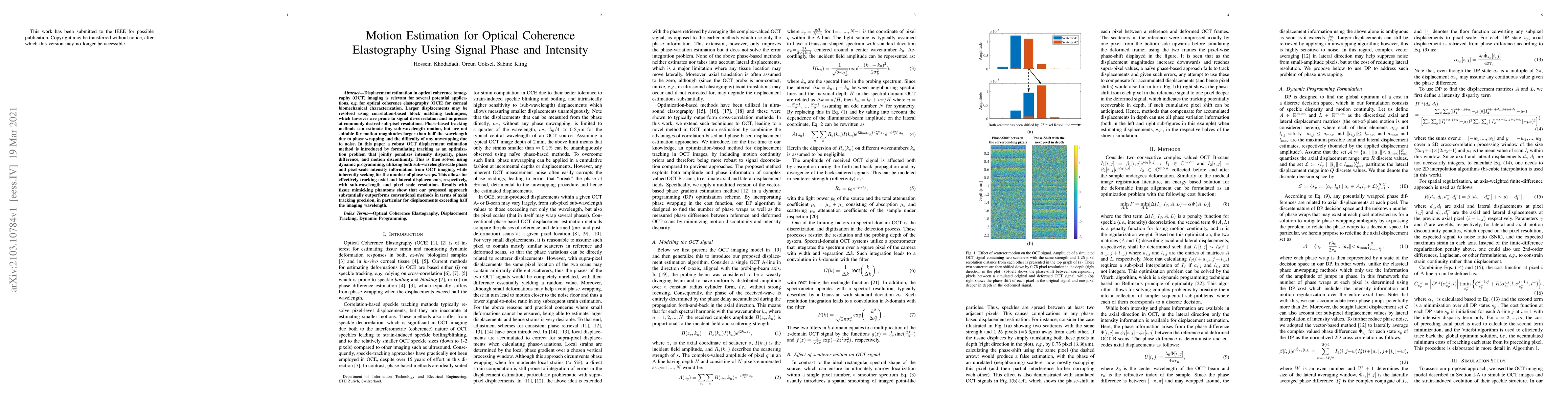 This paper introduces a robust displacement estimation method for optical coherence tomography (OCT) using an optimization approach that combines phase and intensity information, achieving sub-wavelength precision for small displacements and pixel-scale resolution for larger ones, outperforming conventional methods.