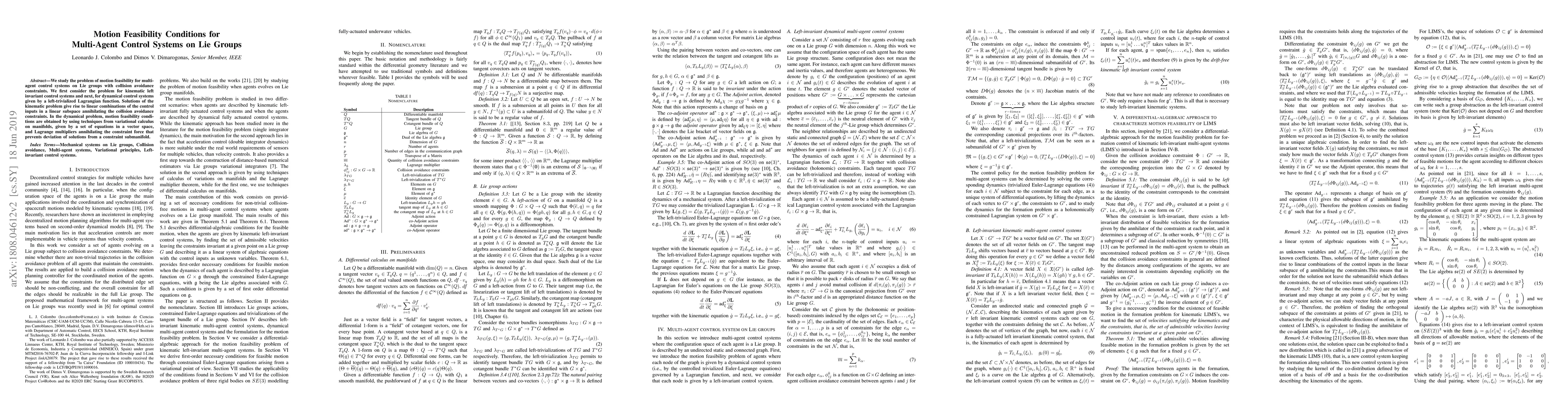 This paper studies motion feasibility conditions for multi-agent control systems on Lie groups with collision avoidance constraints, offering solutions that use variational calculus techniques.