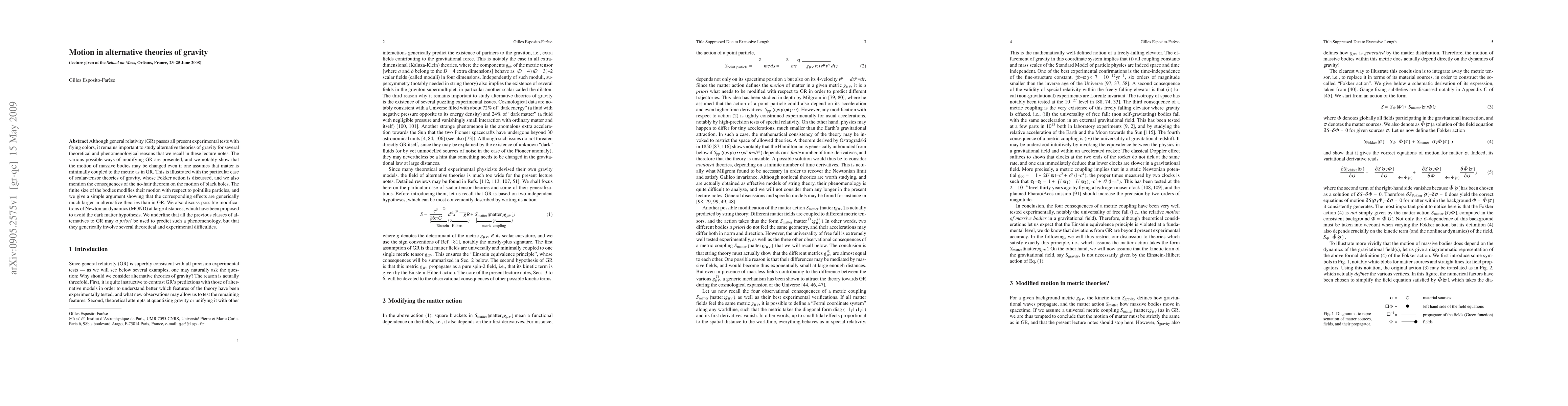This paper explores modifications to general relativity (GR) in alternative theories of gravity, demonstrating how the motion of massive bodies can differ even with minimal coupling to the metric. It highlights the implications of scalar-tensor theories and discusses the impact of finite body size and modifications to Newtonian dynamics, noting the theoretical and experimental challenges involved.
