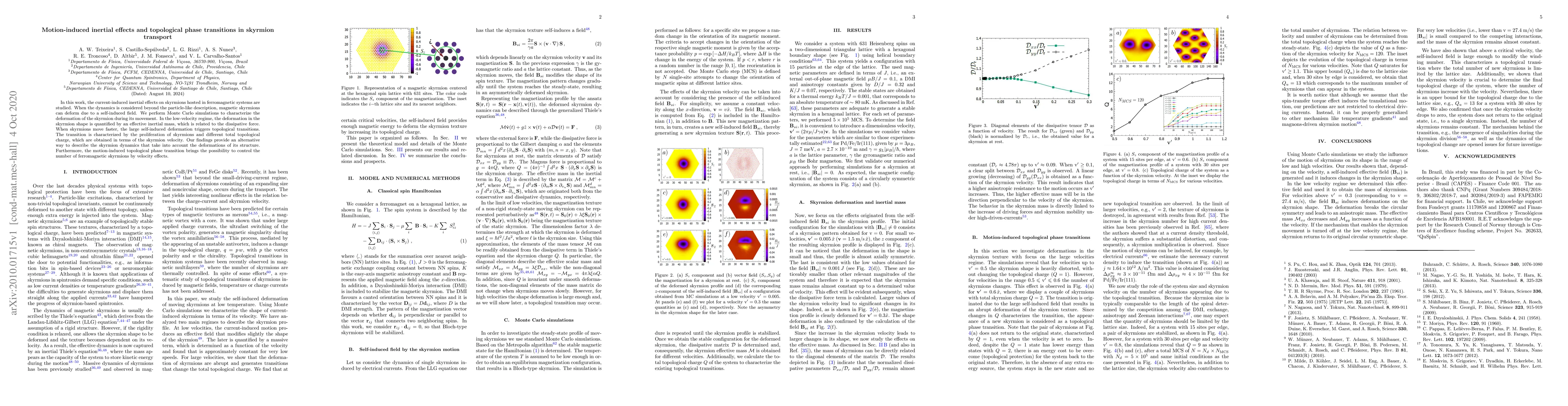 Research shows that skyrmions in ferromagnetic systems can deform due to current-induced inertial effects, leading to topological phase transitions and changes in the number of skyrmions when moving at high velocities.