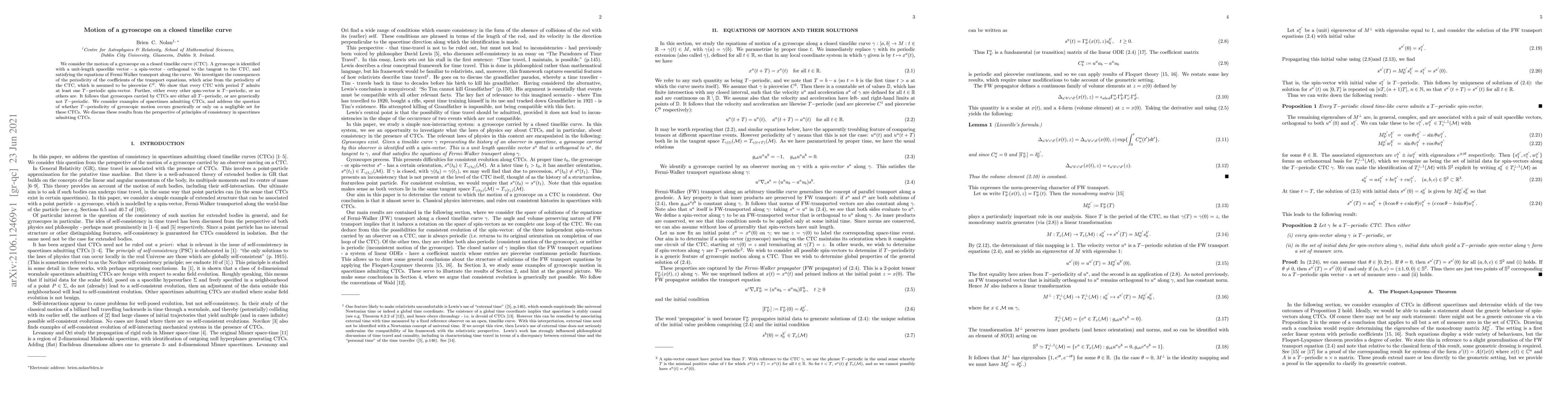 We consider the motion of a gyroscope on a closed timelike curve (CTC). A gyroscope is identified with a unit-length spacelike vector - a spin-vector - orthogonal to the tangent to the CTC, and satisfying the equations of Fermi-Walker transport along the curve. We investigate the consequences of the periodicity of the coefficients of the transport equations, which arise from the periodicty of the CTC, which is assumed to be piecewise $C^2$. We show that every CTC with period $T$ admits at least one $T-$periodic spin-vector. Further, either every other spin-vector is $T-$periodic, or no others are. It follows that gyroscopes carried by CTCs are either all $T-$periodic, or are generically not $T-$periodic. We consider examples of spacetimes admitting CTCs, and address the question of whether $T-$periodicity of gyroscopic motion occurs generically or only on a negligible set for these CTCs. We discuss these results from the perspective of principles of consistency in spacetimes admitting CTCs.