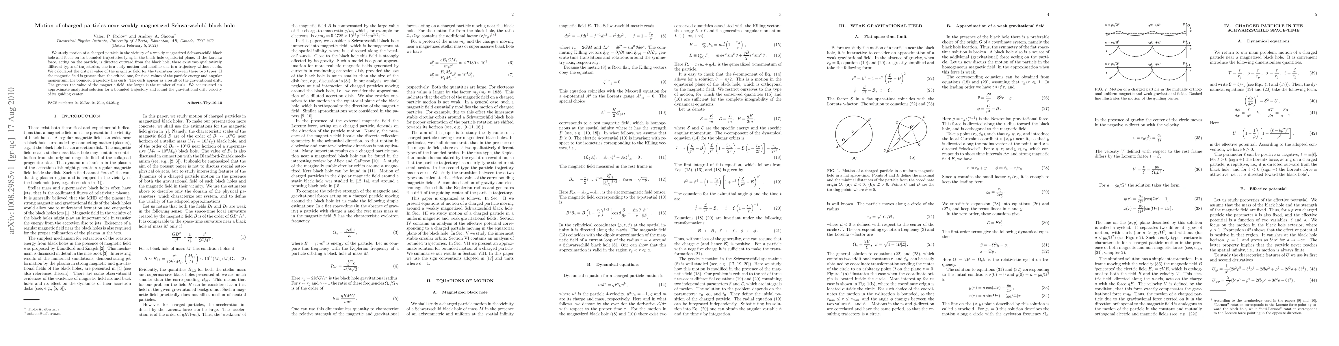 This paper investigates the motion of charged particles near a weakly magnetized Schwarzschild black hole, focusing on bounded trajectories in the equatorial plane. It identifies two types of trajectories based on the Lorentz force direction and calculates the critical magnetic field for transitions between curly and non-curly motions, revealing that higher magnetic fields increase the number of curls due to gravitational drift.