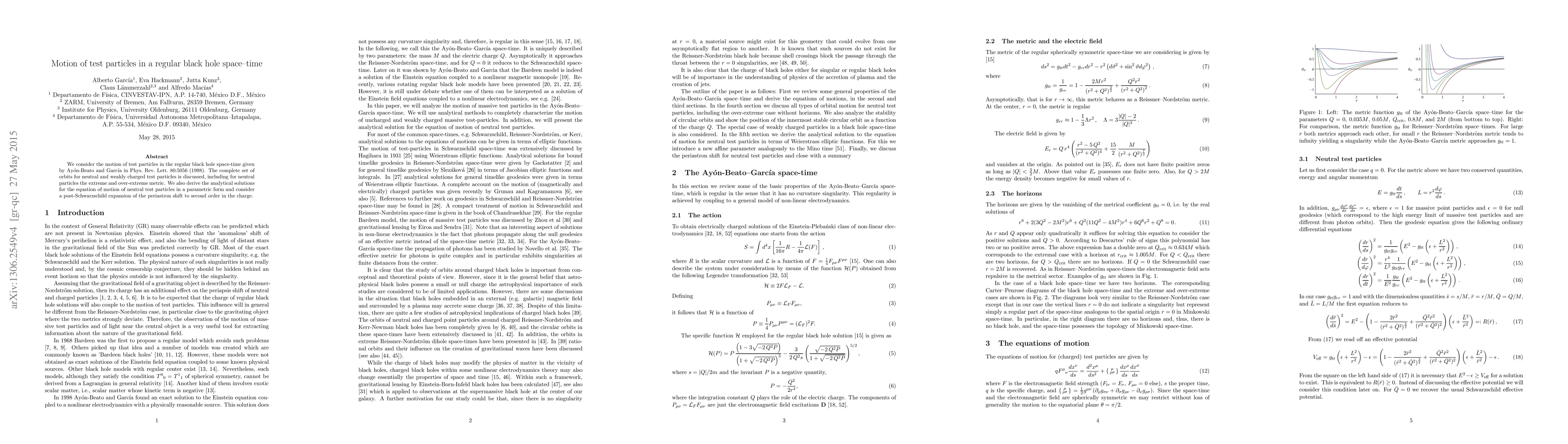 This paper explores the motion of test particles in a regular black hole space-time, providing solutions for neutral and weakly charged test particles and considering post-Schwarzschild expansions.