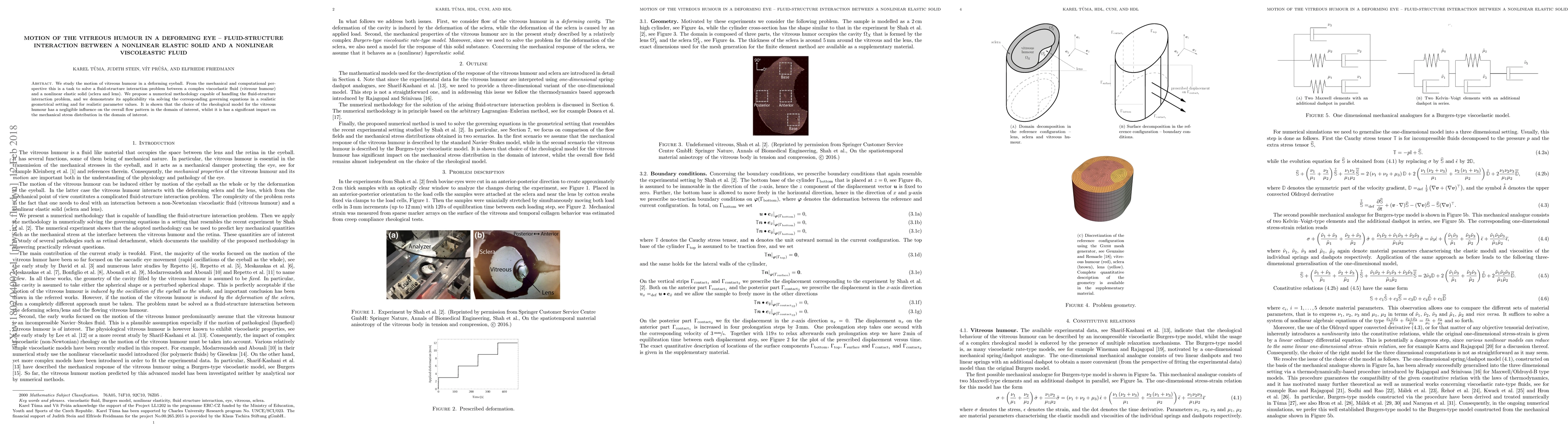 We study the motion of vitreous humour in a deforming eyeball. From the mechanical and computational perspective this is a task to solve a fluid-structure interaction problem between a complex viscoelastic fluid (vitreour humour) and a nonlinear elastic solid (sclera and lens). We propose a numerical methodology capable of handling the fluid-structure interaction problem, and we demonstrate its applicability via solving the corresponding governing equations in a realistic geometrical setting and for realistic parameter values. It is shown that the choice of the rheological model for the vitreous humour has a negligible influence on the overall flow pattern in the domain of interest, whilst it is has a significant impact on the mechanical stress distribution in the domain of interest.