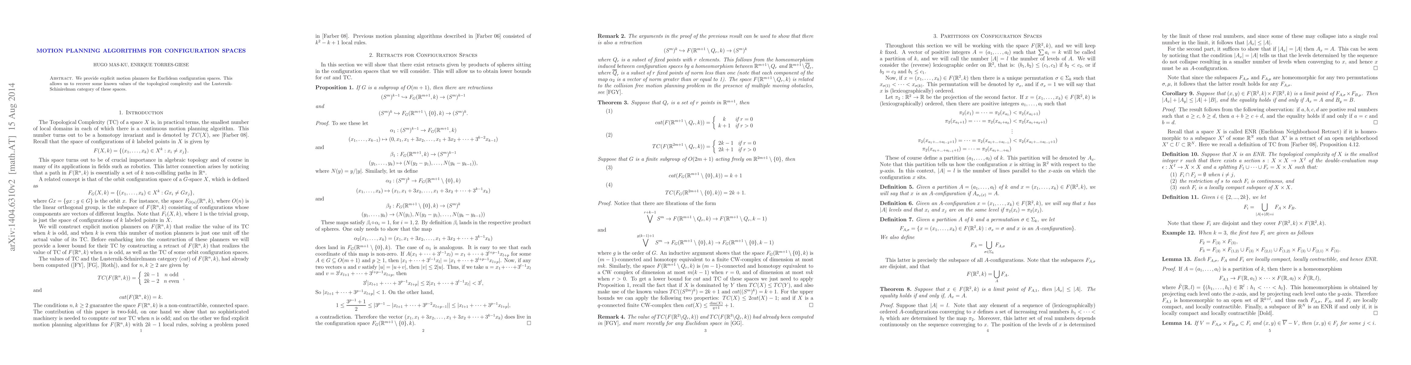 Summary: This paper presents explicit motion planning algorithms for Euclidean configuration spaces, enabling the determination of topological complexity and Lusternik-Schnirelmann category values for these spaces.