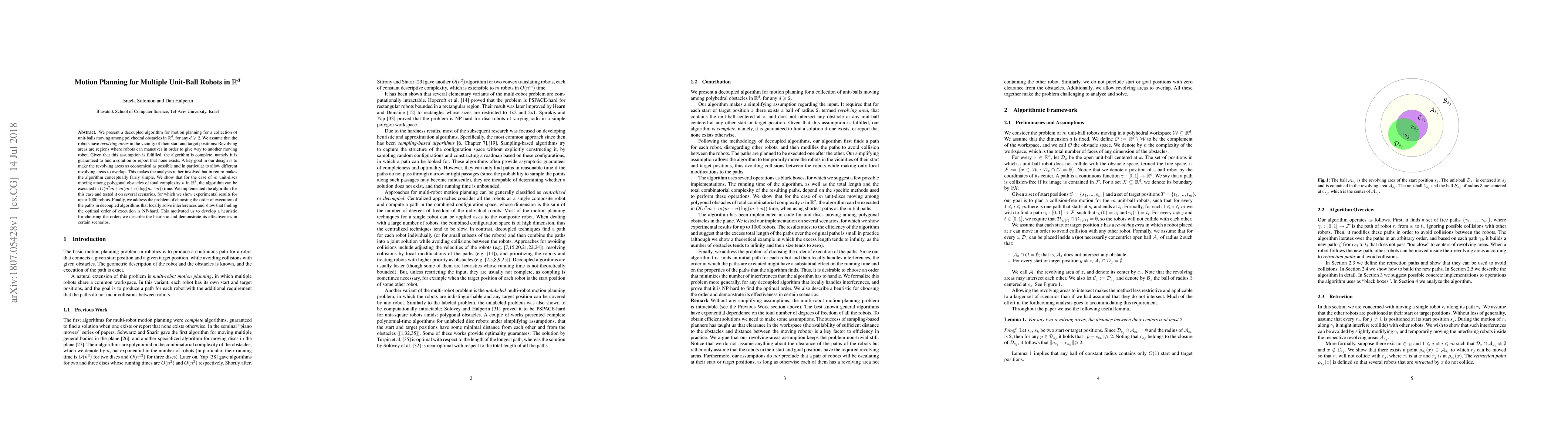 This research paper presents a decoupled algorithm for motion planning of multiple unit-ball robots in d-dimensional space, allowing them to maneuver around each other while avoiding obstacles.