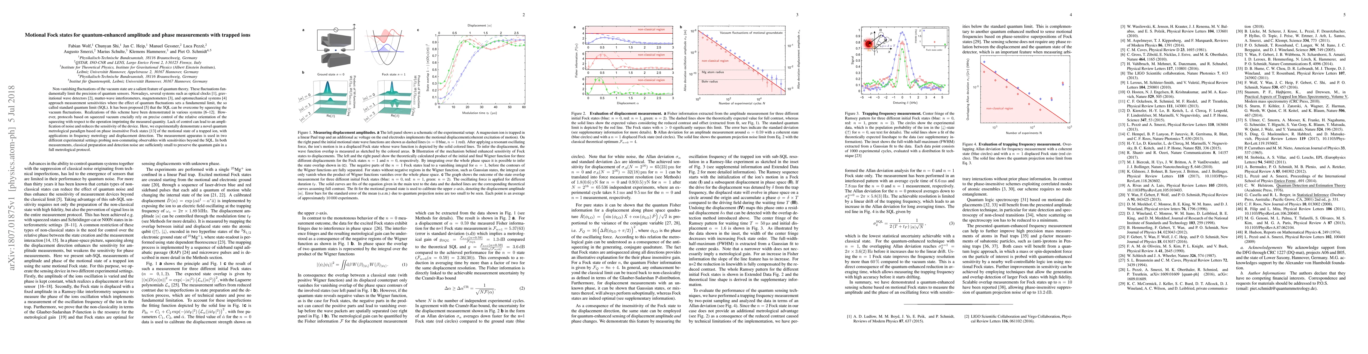 Non-vanishing fluctuations of the vacuum state are a salient feature of quantum theory. These fluctuations fundamentally limit the precision of quantum sensors. Nowadays, several systems such as optical clocks, gravitational wave detectors, matter-wave interferometers, magnetometers, and optomechanical systems approach measurement sensitivities where the effect of quantum fluctuations sets a fundamental limit, the so-called standard quantum limit (SQL). It has been proposed that the SQL can be overcome by squeezing the vacuum fluctuations. Realizations of this scheme have been demonstrated in various systems. However, protocols based on squeezed vacuum crucially rely on precise control of the relative orientation of the squeezing with respect to the operation imprinting the measured quantity. Lack of control can lead to an amplification of noise and reduces the sensitivity of the device. Here, we experimentally demonstrate a novel quantum metrological paradigm based on phase insensitive Fock states of the motional state of a trapped ion, with applications in frequency metrology and displacement detection. The measurement apparatus is used in two different experimental settings probing non-commuting observables with sensitivities beyond the SQL. In both measurements, classical preparation and detection noise are sufficiently small to preserve the quantum gain in a full metrological protocol.