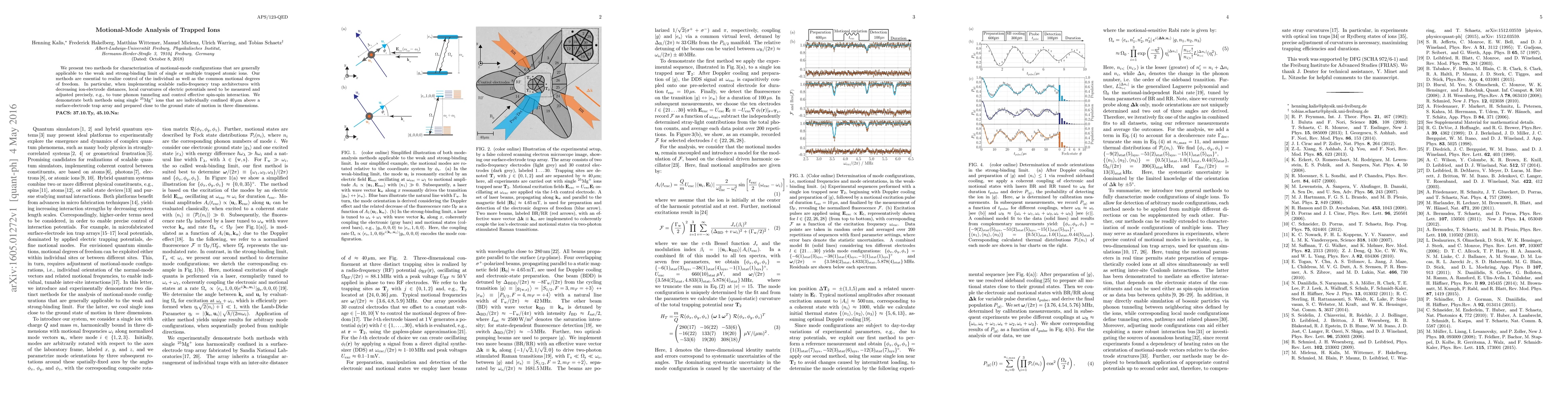 We present two methods for characterization of motional-mode configurations that are generally applicable to the weak and strong-binding limit of single or multiple trapped atomic ions. Our methods are essential to realize control of the individual as well as the common motional degrees of freedom. In particular, when implementing scalable radio-frequency trap architectures with decreasing ion-electrode distances, local curvatures of electric potentials need to be measured and adjusted precisely, e.g., to tune phonon tunneling and control effective spin-spin interaction. We demonstrate both methods using single $^{25}$Mg$^+$ ions that are individually confined $40\,\mu$m above a surface-electrode trap array and prepared close to the ground state of motion in three dimensions.