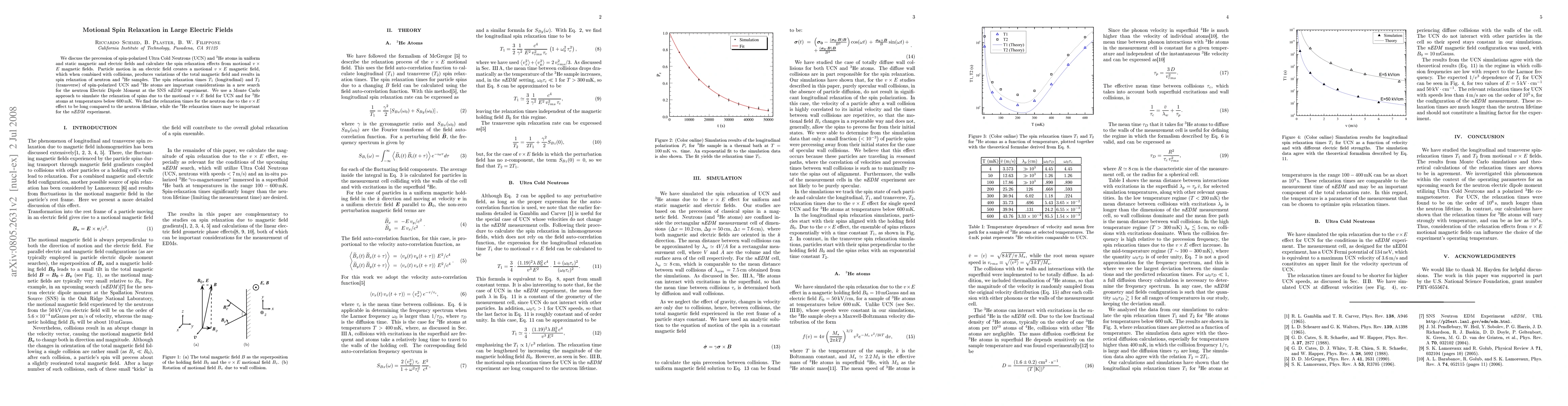 Researchers studied the spin relaxation of ultra-cold neutrons and 3He atoms in large electric fields, finding that spin relaxation times are long for neutrons but potentially important for a new experiment searching for the neutron Electric Dipole Moment.