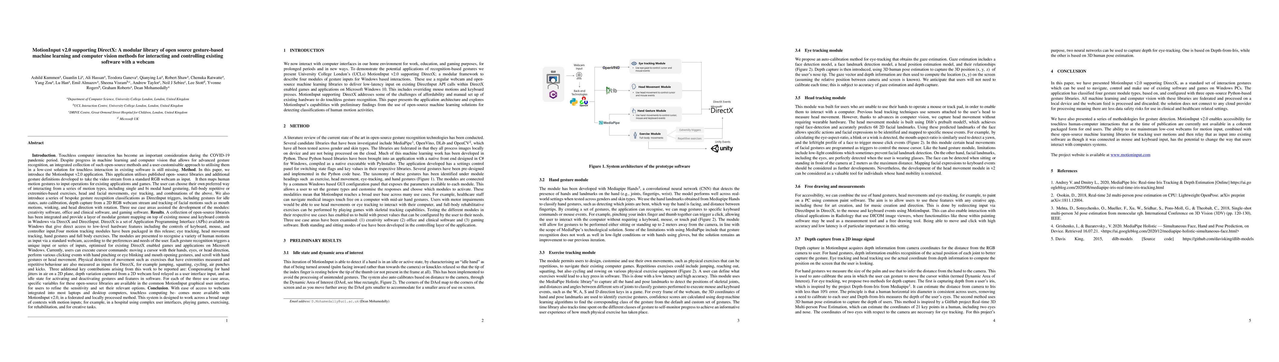 MotionInput v2.0 is an open-source library for touchless computer interaction that integrates gesture-based machine learning and computer vision methods using a webcam, providing users with customizable control over existing software.
