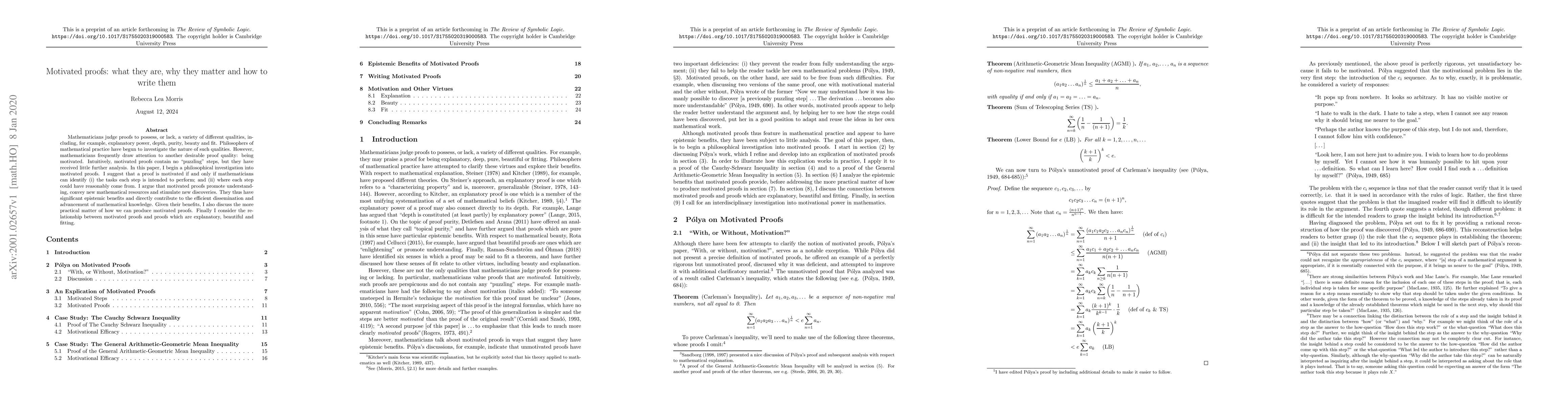 This paper investigates motivated proofs in mathematics, arguing that they promote understanding, convey new knowledge, and stimulate discoveries, offering practical guidance on how to produce them.