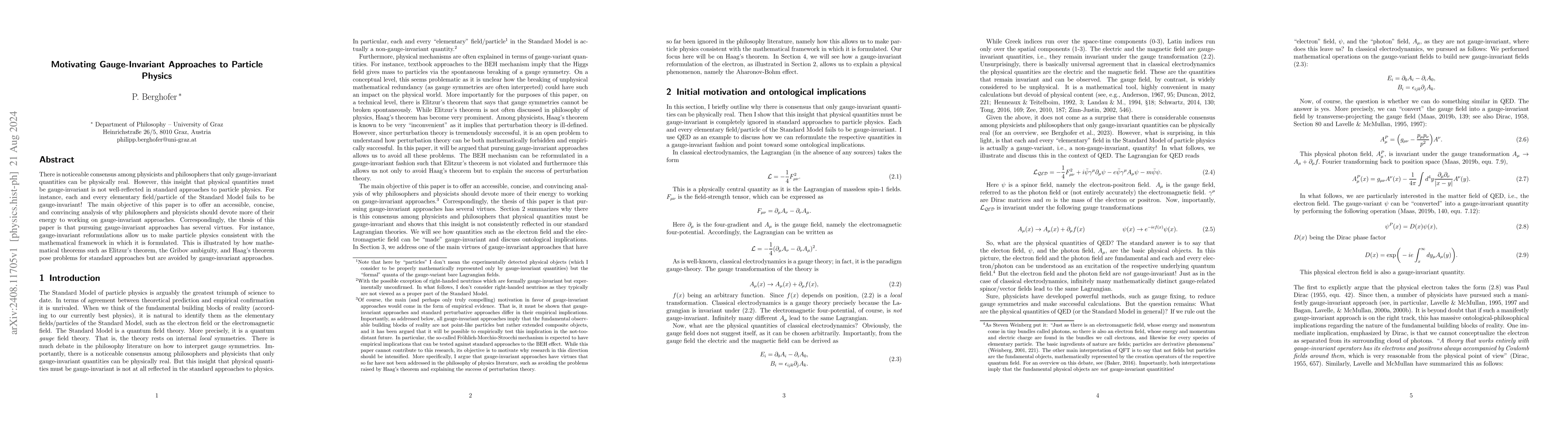 This paper argues for the adoption of gauge-invariant approaches in particle physics, highlighting that these methods align physical quantities with philosophical expectations of physical reality. It demonstrates that gauge-invariant reformulations resolve issues raised by mathematical theorems like Elitzur's theorem and the Gribov ambiguity, offering a more consistent framework for particle physics.