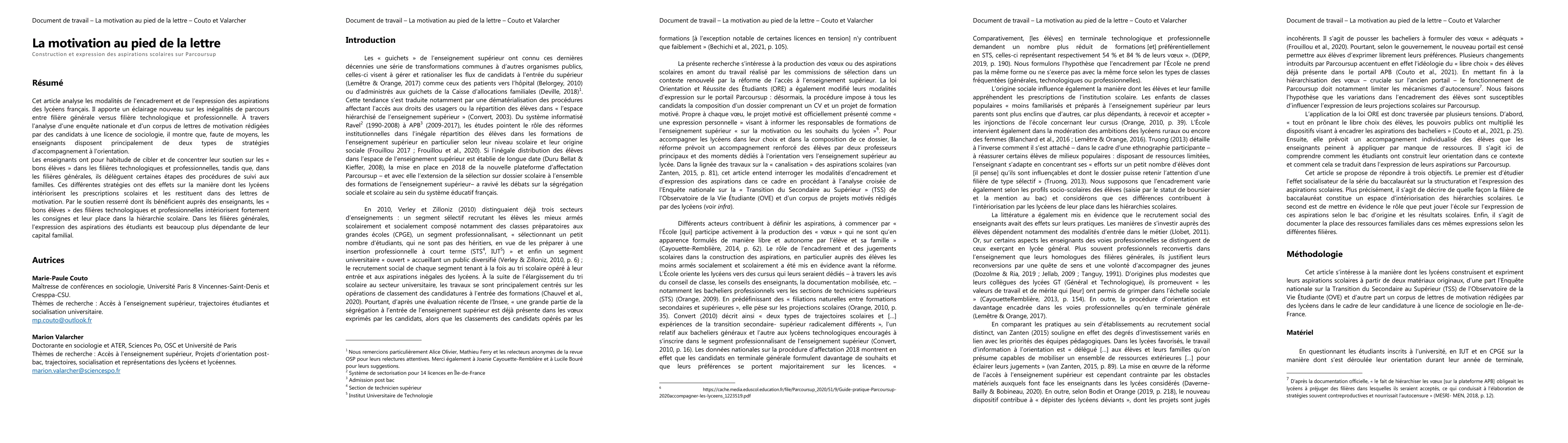 This paper examines how French high school students articulate their educational aspirations, revealing disparities in guidance between academic and vocational tracks. It finds that teachers focus support on "good students" in vocational tracks, while academic track students rely more on familial influence, impacting their self-expression in application letters.