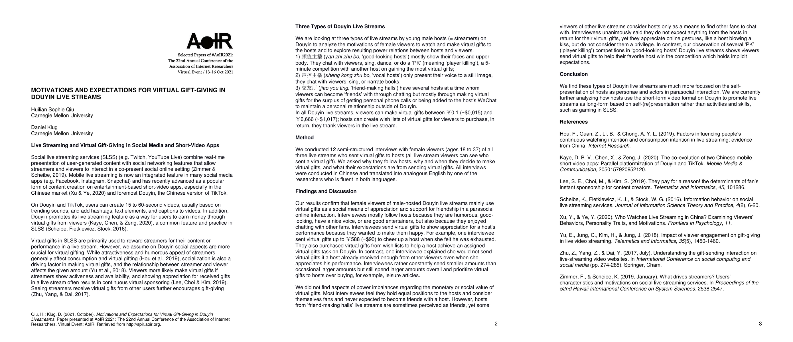 Social live streaming services (SLSS) (e.g. Twitch, YouTube Live) combine real-time presentation of user-generated content with social networking features that allow streamers and viewers to interact in a co-present social online setting. Mobile live streaming is now an integrated feature in many social media apps (e.g. Facebook, Instagram, Snapchat) and has recently advanced as a popular form of content creation on entertainment-based short-video apps, especially in the Chinese market and foremost Douyin, the Chinese version of TikTok.