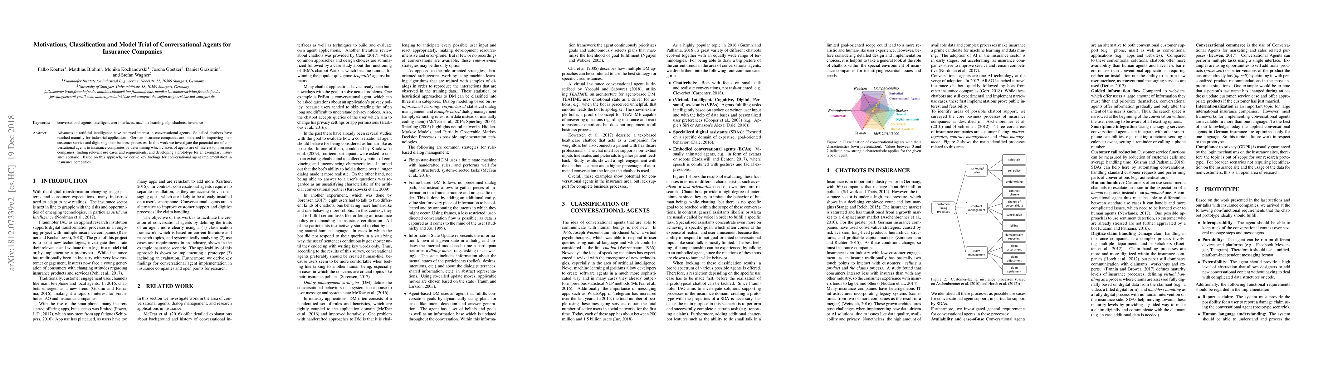 This paper explores the potential of conversational agents in German insurance companies to enhance customer service and digitize business processes. It classifies relevant agent types, identifies use cases and requirements, and develops a prototype, concluding with key insights for successful implementation.