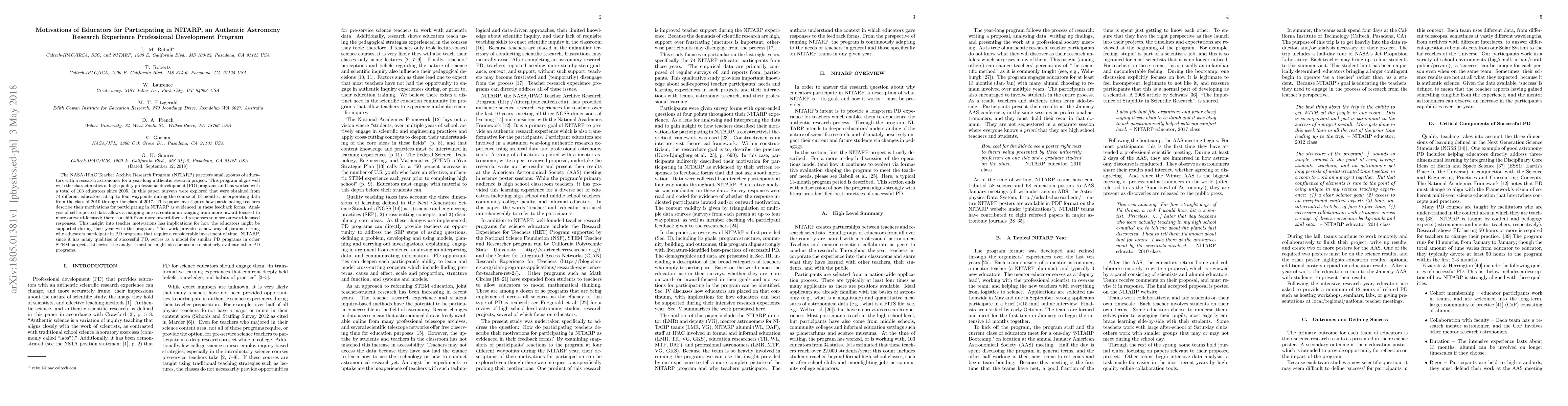 This study analyzes survey data from educators participating in NITARP, revealing a shift from inward-focused to outward-focused motivations over time, which can inform better support for professional development programs. The findings suggest NITARP's success as a model for STEM PD programs.