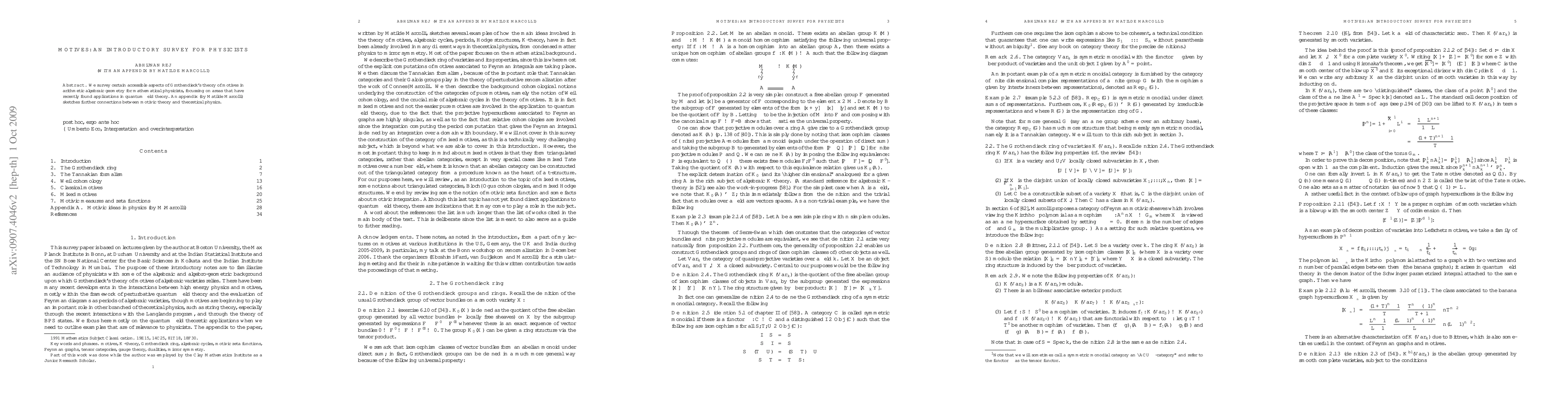 This paper introduces key concepts of Grothendieck's theory of motives to physicists, highlighting connections to quantum field theory and theoretical physics. It aims to bridge mathematical physics with algebraic geometry, providing new insights into recent applications.