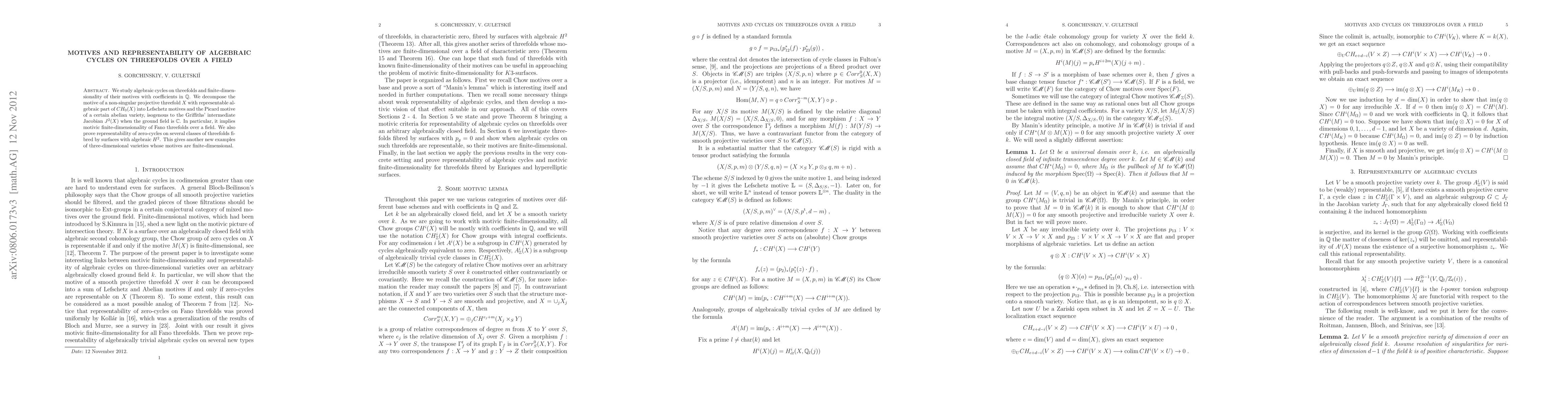 This paper studies the connections between algebraic cycles on threefolds and their motives, showing that certain classes of threefolds have finite-dimensional motives.