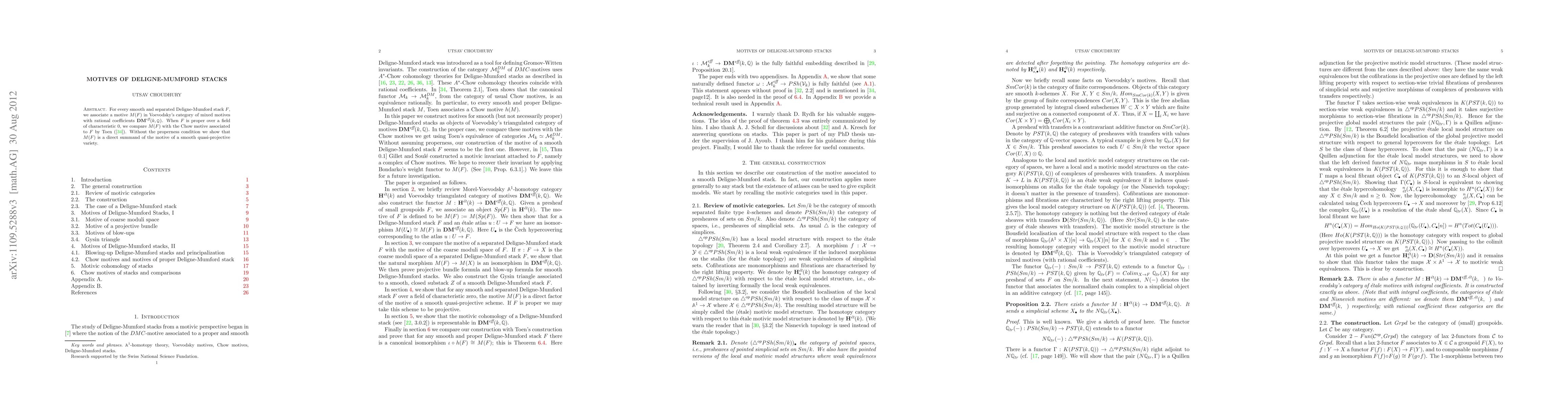 This paper associates a motive $M(F)$ to every smooth and separated Deligne-Mumford stack $F$ in Voevodsky's category of mixed motives. For proper $F$ over fields of characteristic 0, it compares $M(F)$ with the Chow motive, and without properness, it shows $M(F)$ is a direct summand of a smooth quasi-projective variety's motive.