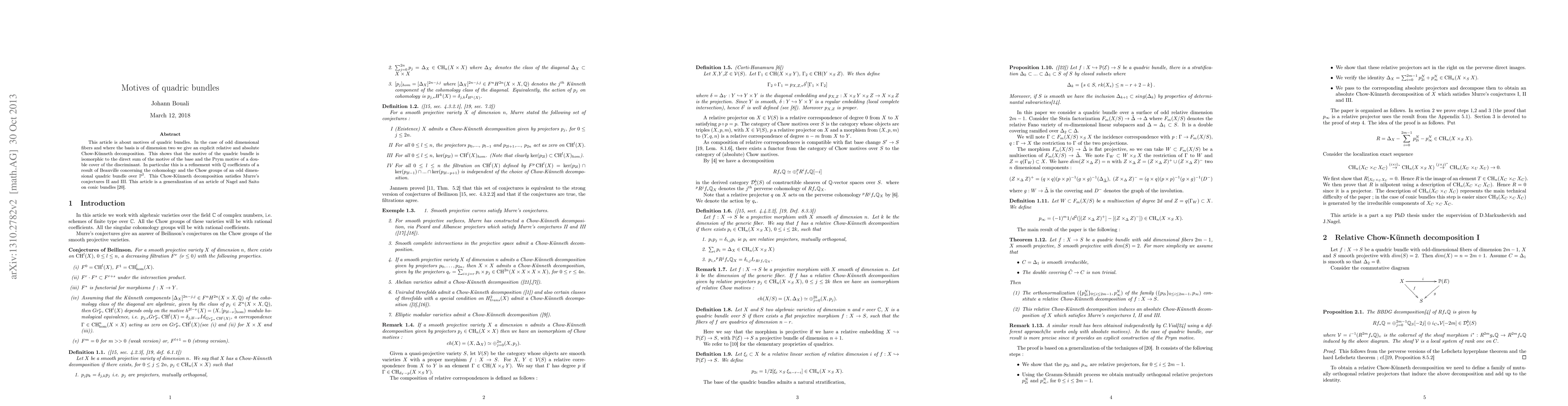 The paper presents an explicit relative and absolute Chow-Künneth decomposition for quadric bundles under specified conditions, extending known results to motives and satisfying Murre's conjectures.