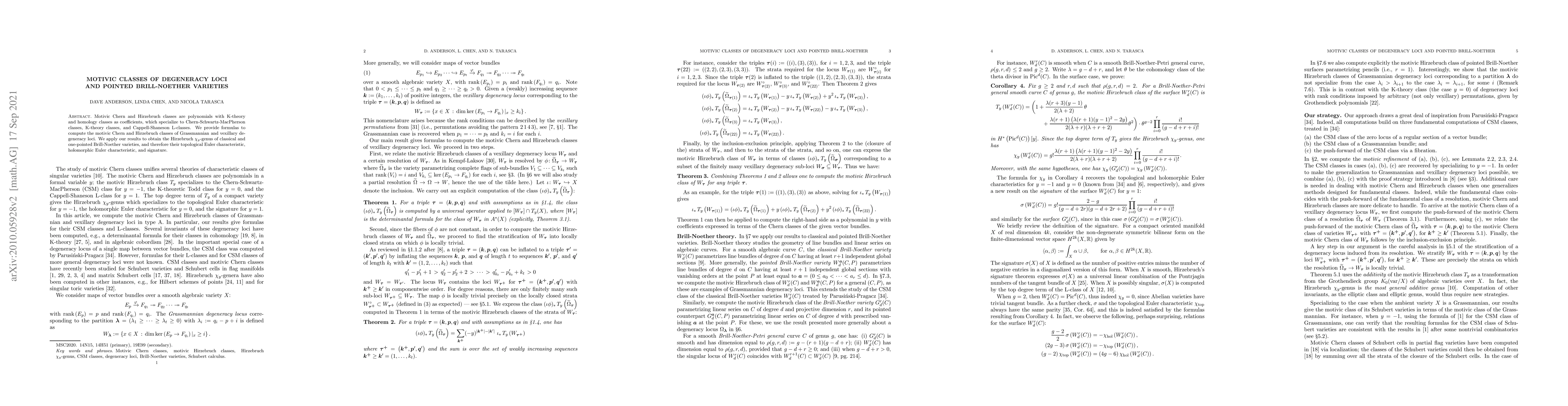 This paper computes motivic Chern and Hirzebruch classes for degeneracy loci in Grassmannians and vexillary varieties, providing formulas that yield insights into classical and one-pointed Brill-Noether varieties' topological Euler characteristic, holomorphic Euler characteristic, and signature. The results utilize motivic integration techniques and generalize classical characteristic classes.