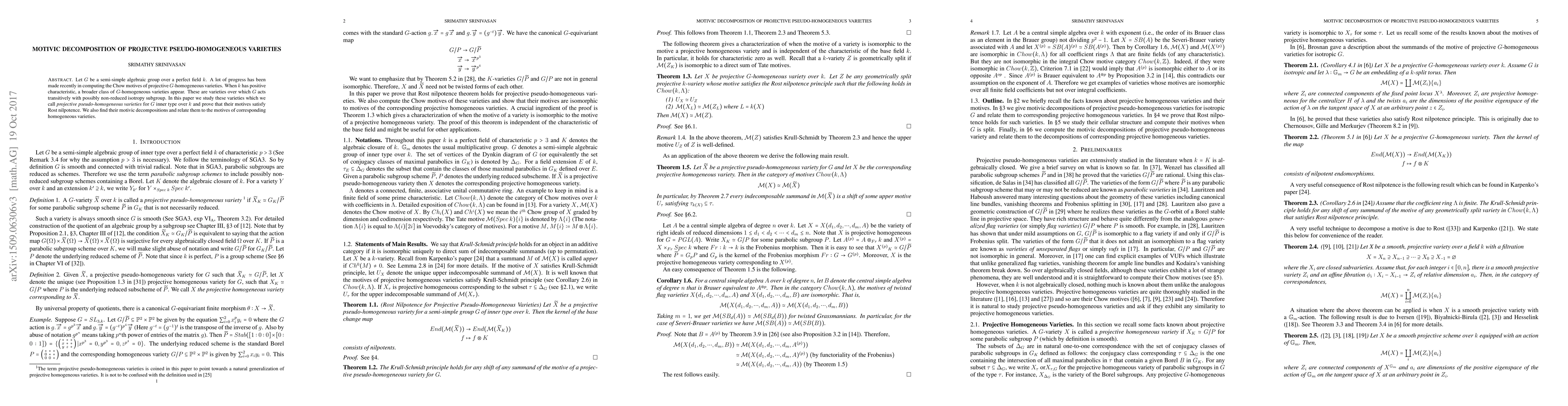 This paper explores projective pseudo-homogeneous varieties for $G$ inner type over fields of positive characteristic, proving their motives satisfy Rost nilpotence and finding their motivic decompositions. It relates these decompositions to those of corresponding homogeneous varieties.