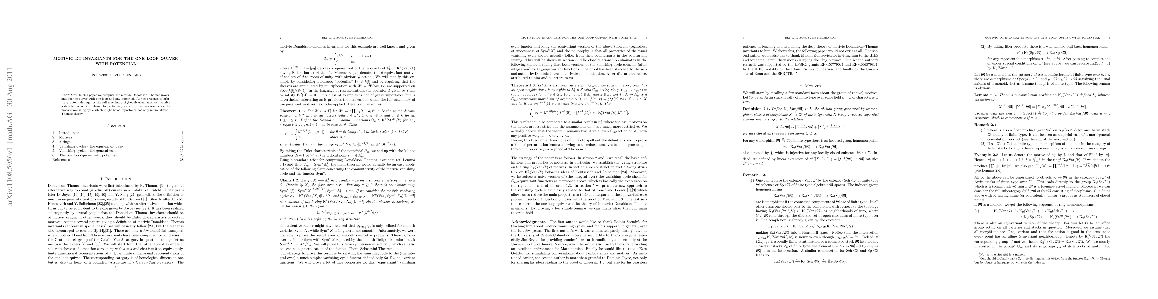 In this paper we compute the motivic Donaldson--Thomas invariants for the quiver with one loop and any potential. As the presence of arbitrary potentials requires the full machinery of \hat(\mu)-equivariant motives, we give a detailed account of them. In particular, we will prove two results for the motivic vanishing cycle which might be of importance not only in Donaldson--Thomas theory.