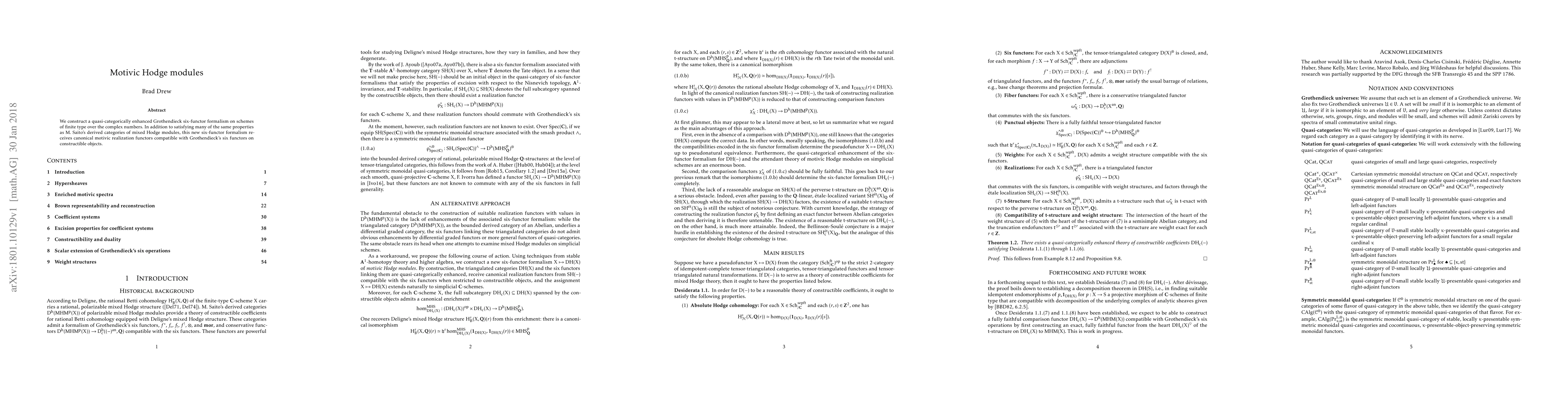 We construct a quasi-categorically enhanced Grothendieck six-functor formalism on schemes of finite type over the complex numbers. In addition to satisfying many of the same properties as M. Saito's derived categories of mixed Hodge modules, this new six-functor formalism receives canonical motivic realization functors compatible with Grothendieck's six functors on constructible objects.